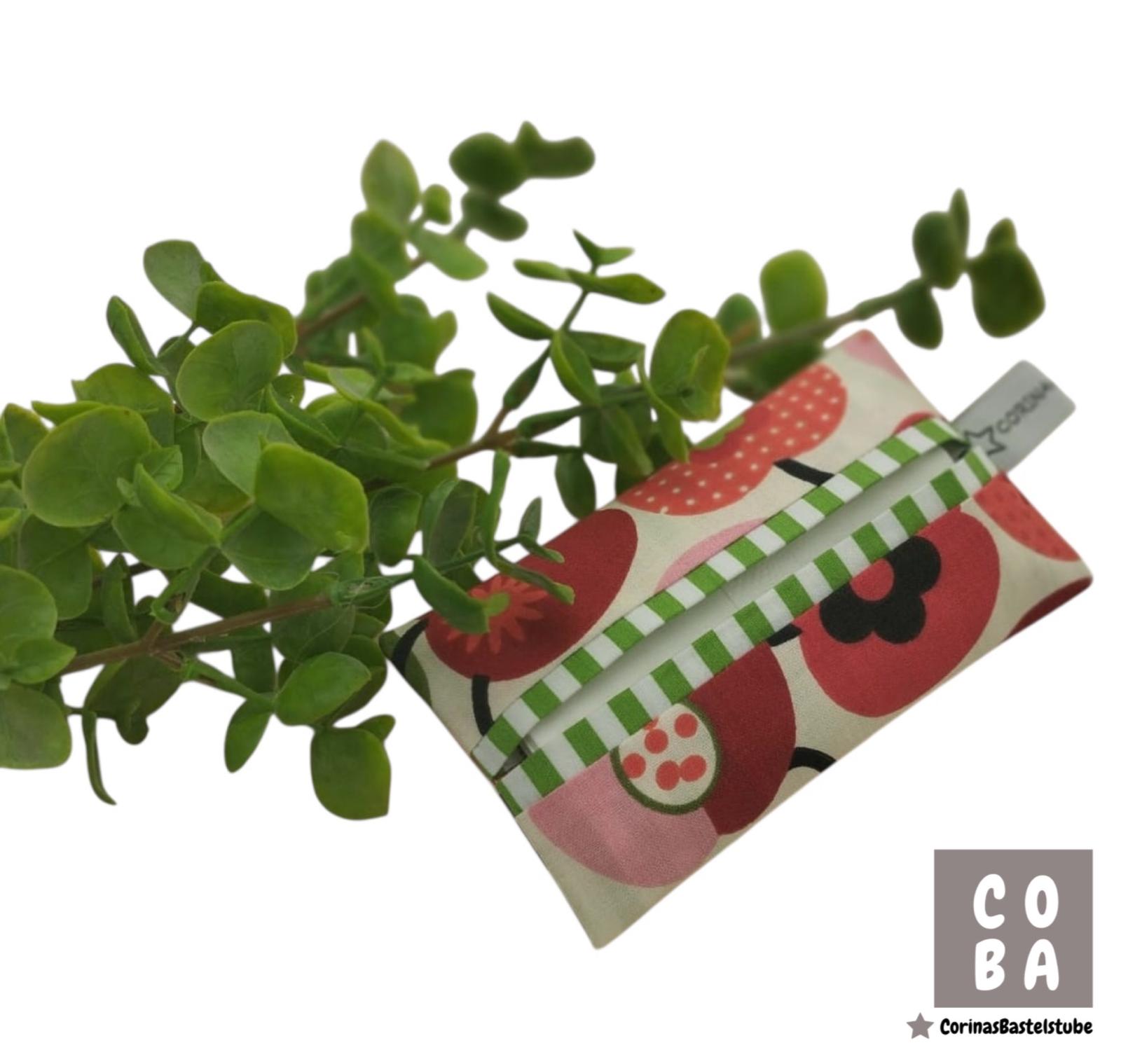 Diese liebevoll genähte Taschentüchertasche im charmanten Retro-Apfel-Design bringt Farbe und Nostalgie in deine Handtasche. Schluss mit zerdrückten Plastikverpackungen – deine Taschentücher sind stilvoll und geschützt verstaut.