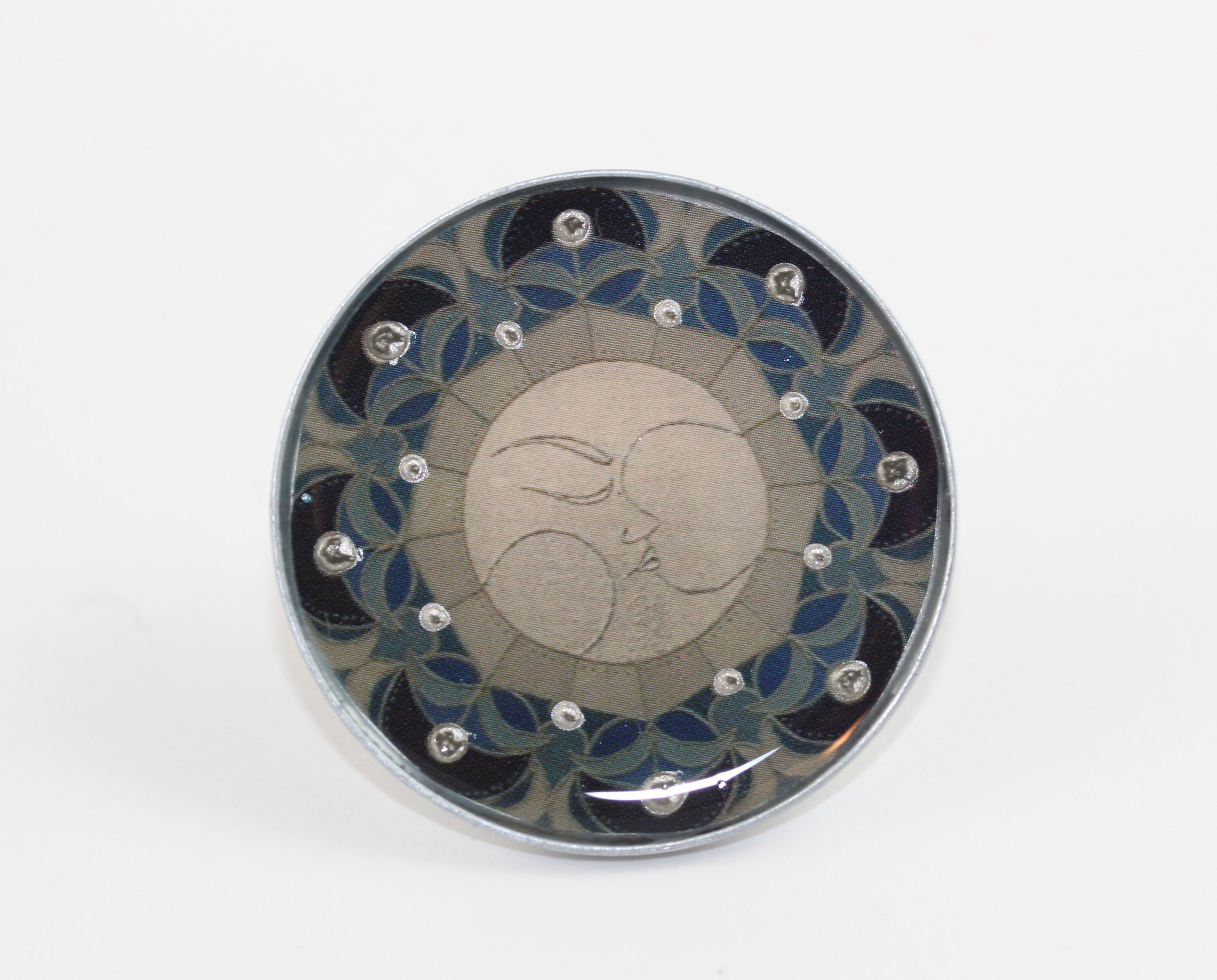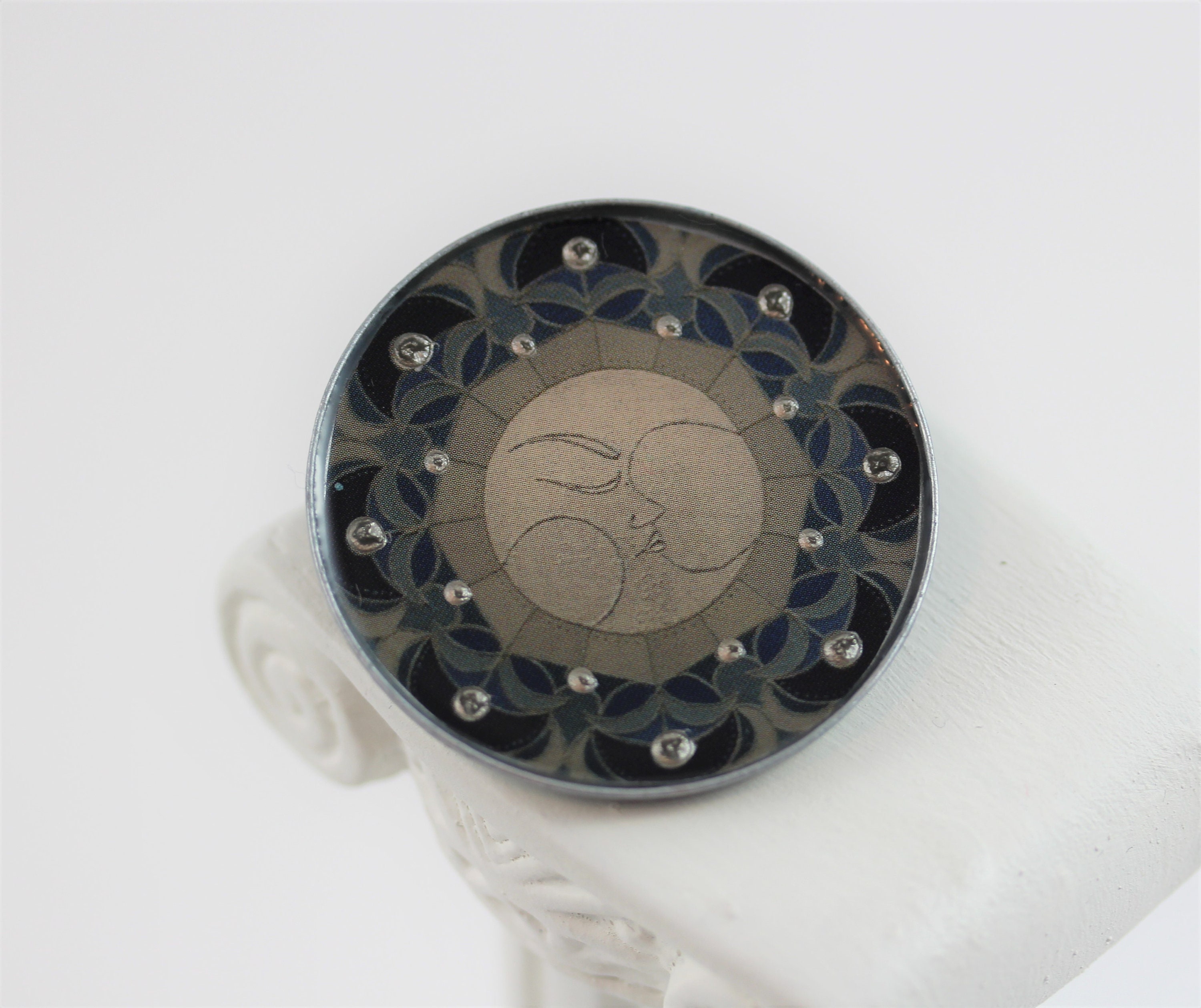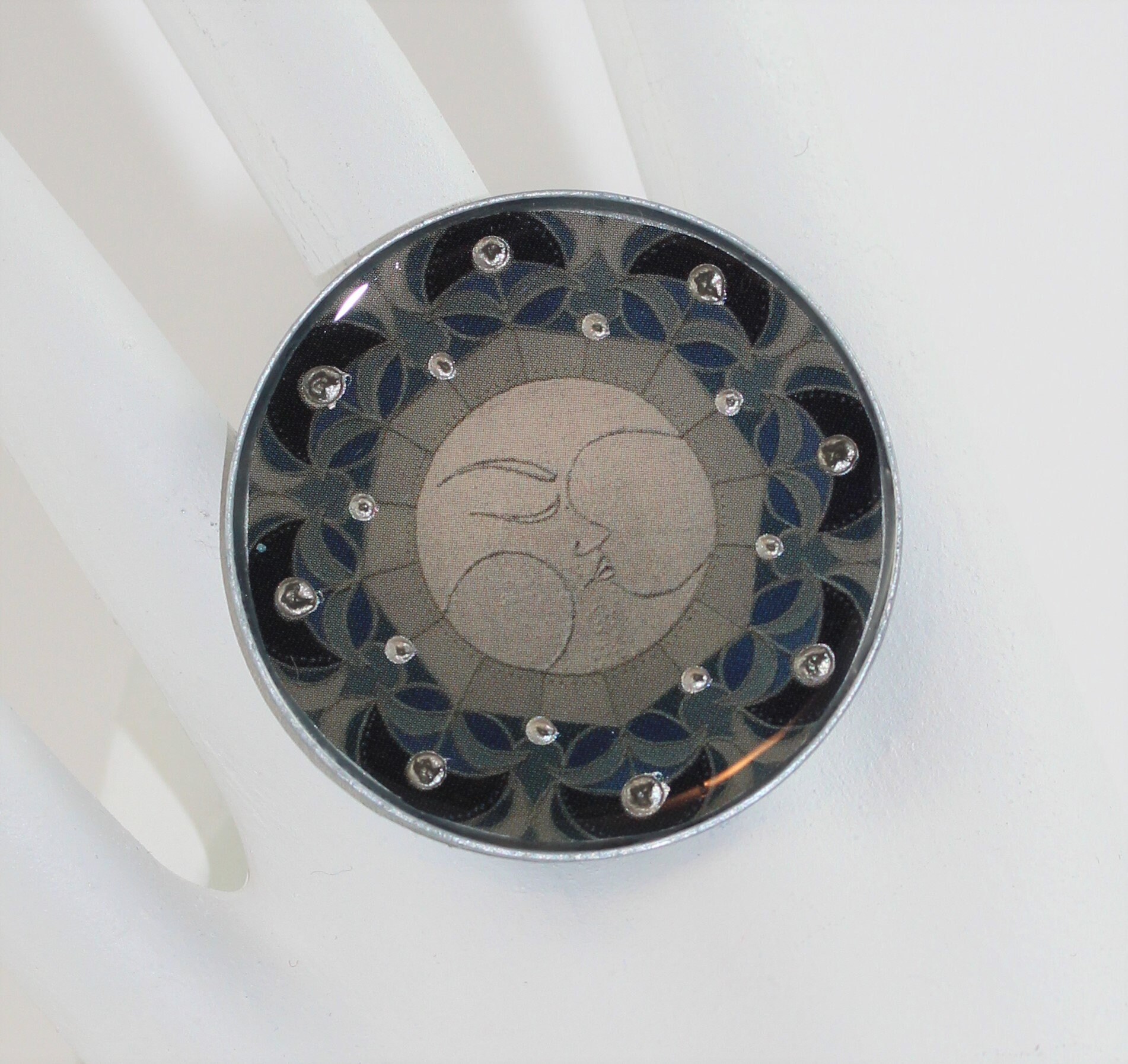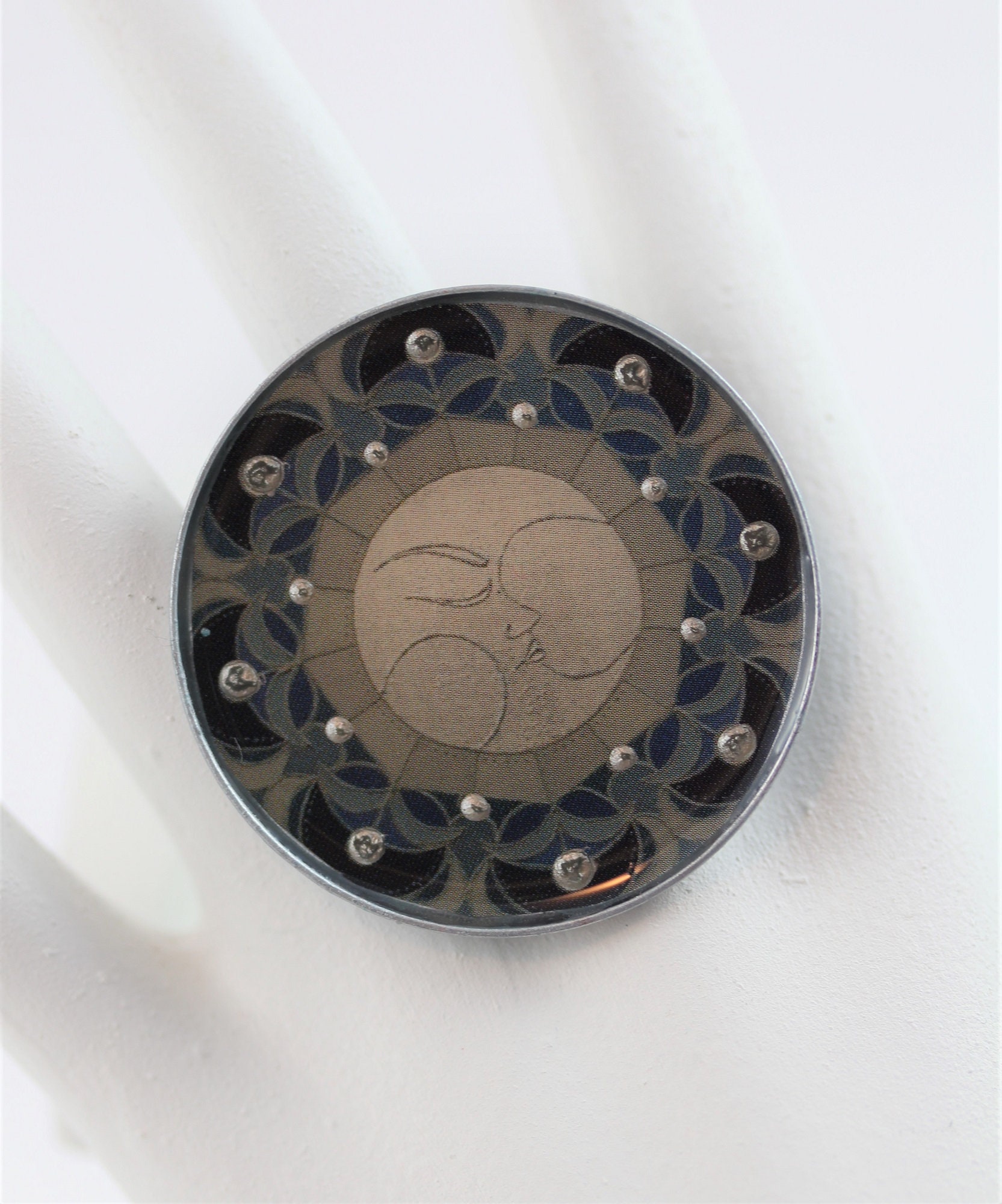 Ein einzigartigerer Ring mit dem Mond Mandala Motiv "Lunasacrada" in einer großen oppulenten runden Fassung.
