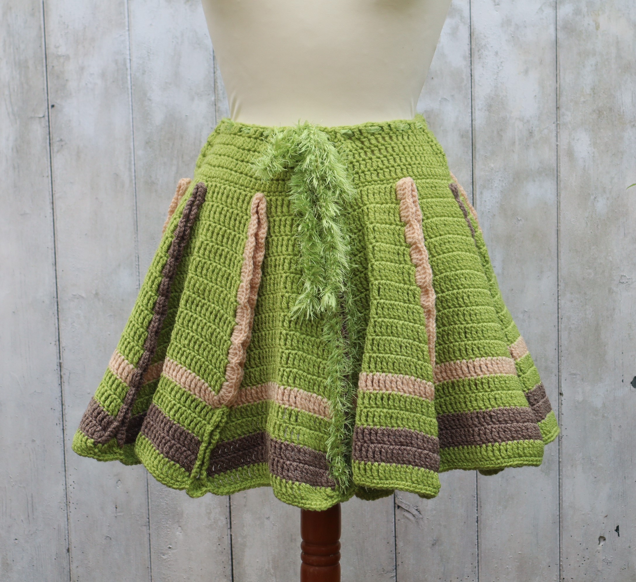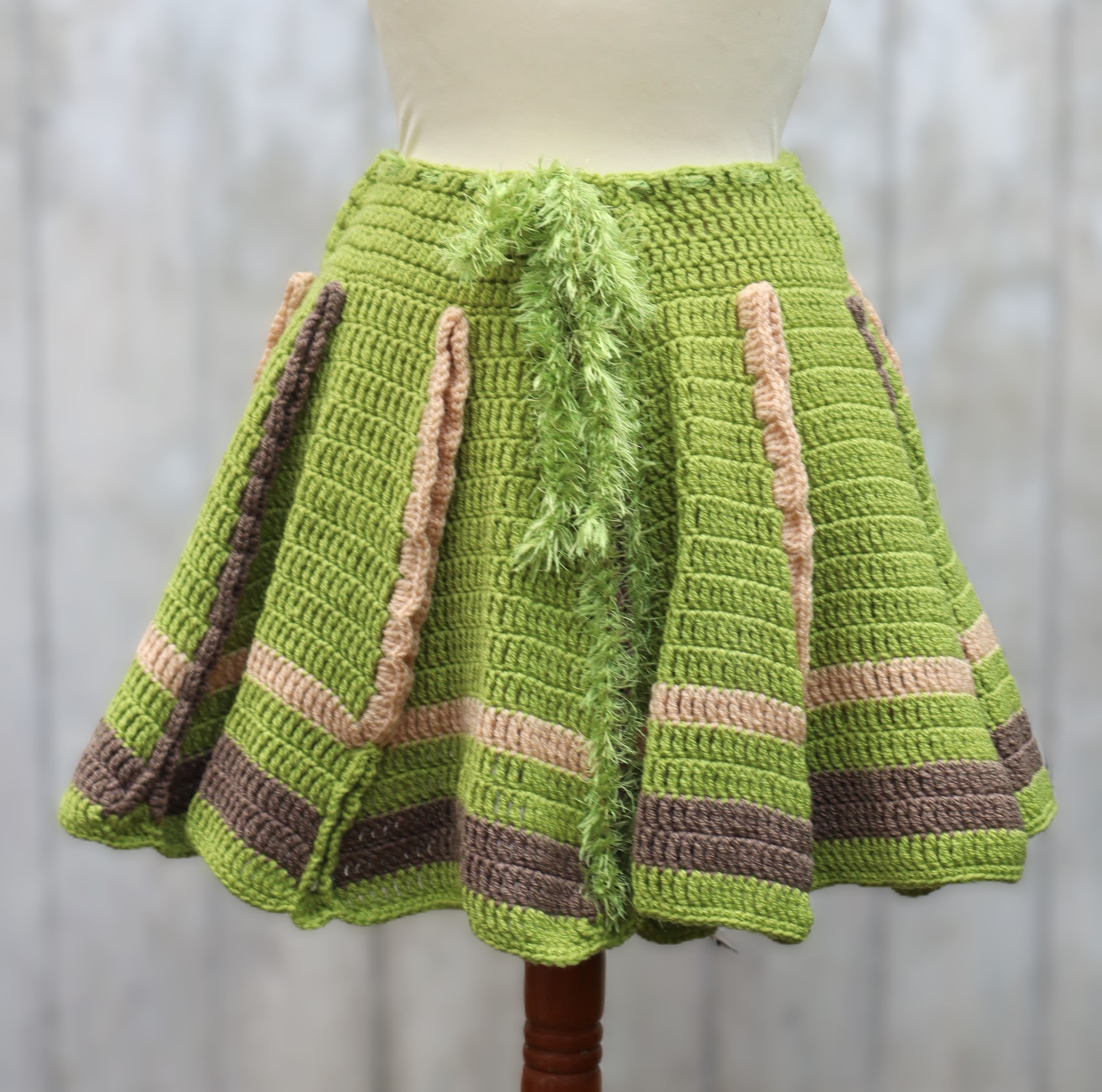 Toller weitschwingender Rock, aus pflegeleichtem, wärmendem Acrylgarn gehäkelt. Eine schicke, aufwendige Handarbeit in schicken Farben.