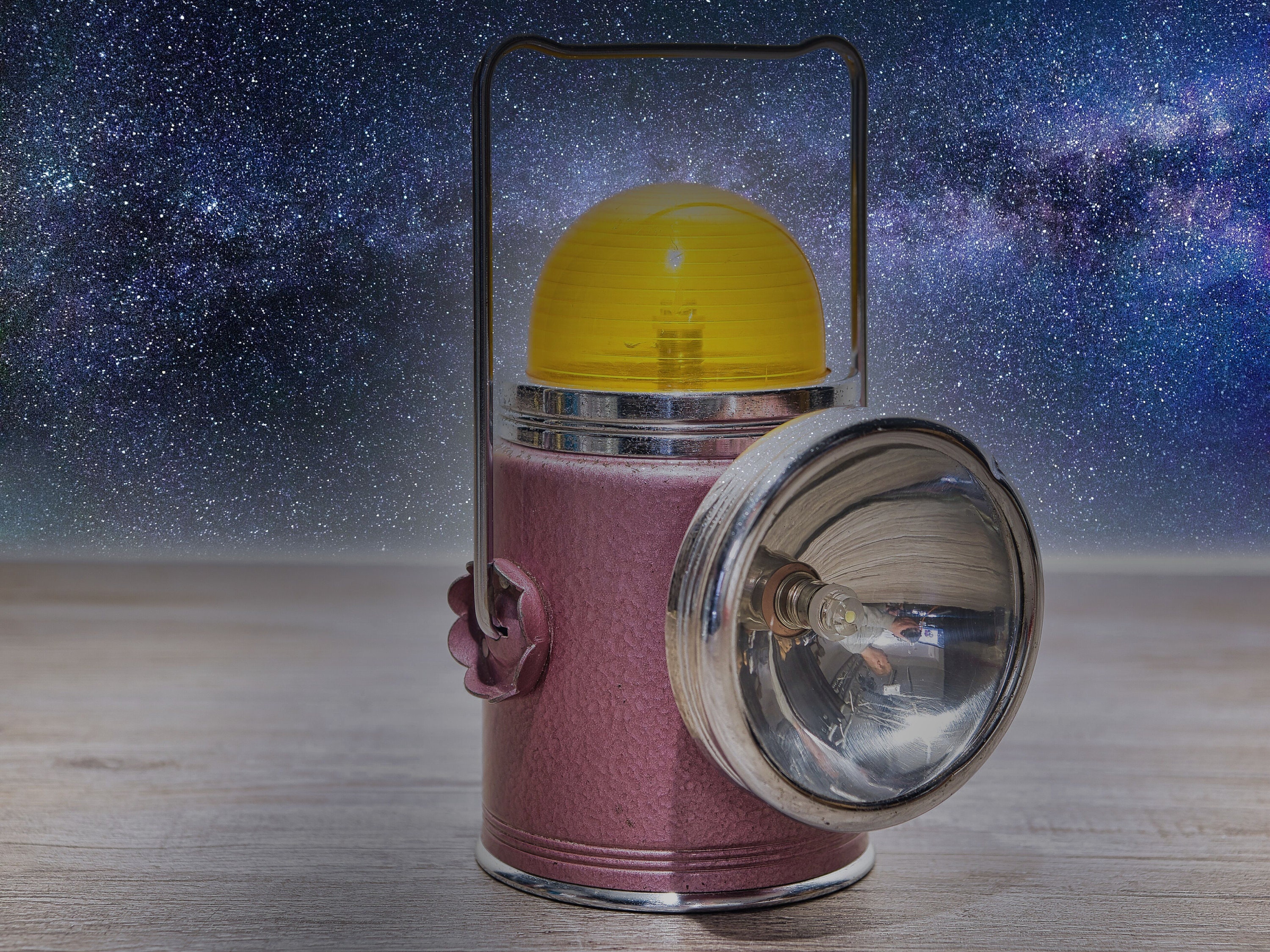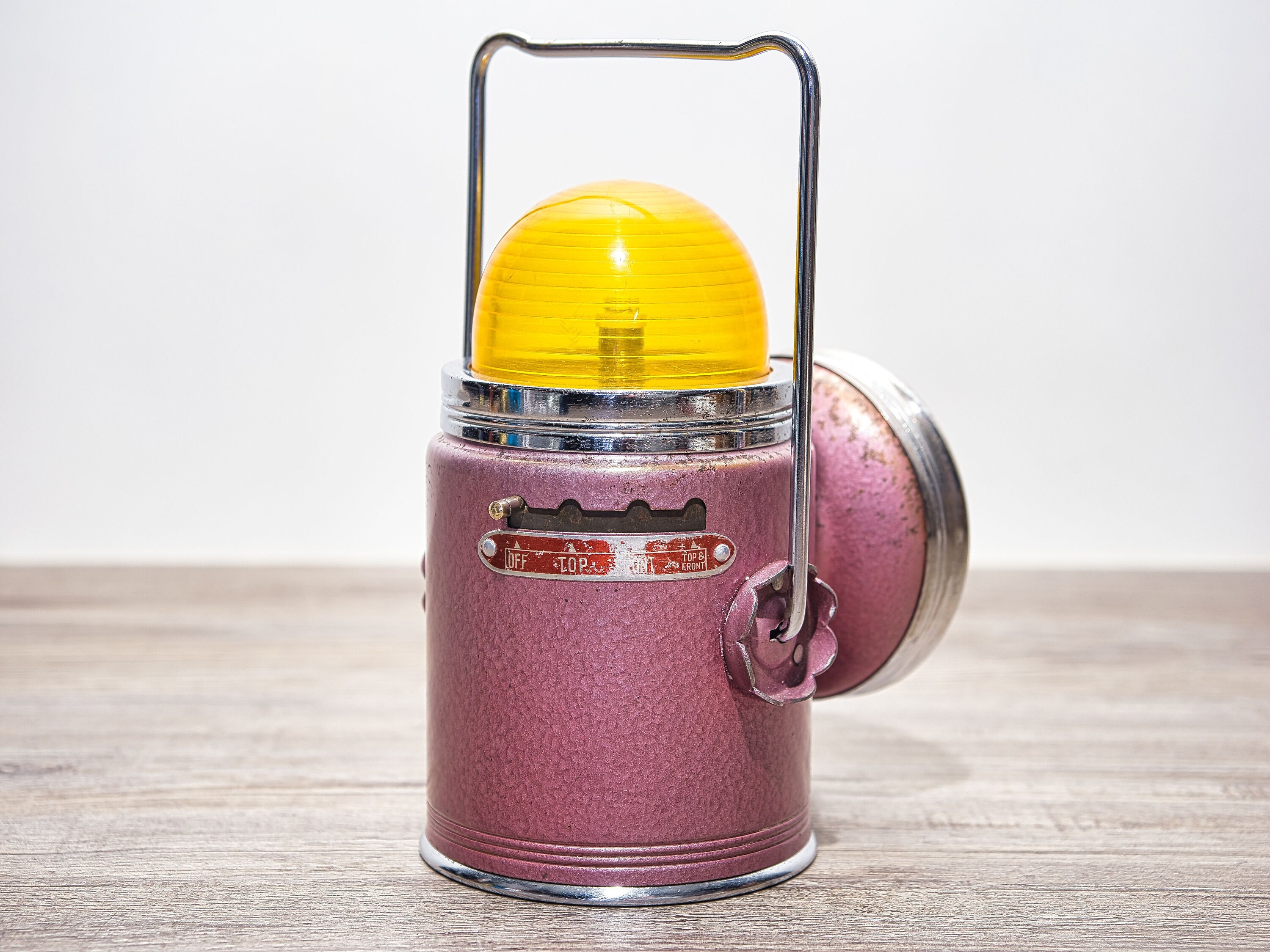Die Patina, sowie Beschriftungen auf der Lampe wurden komplett erhalten. Der ursprüngliche Charme geht nicht verloren!