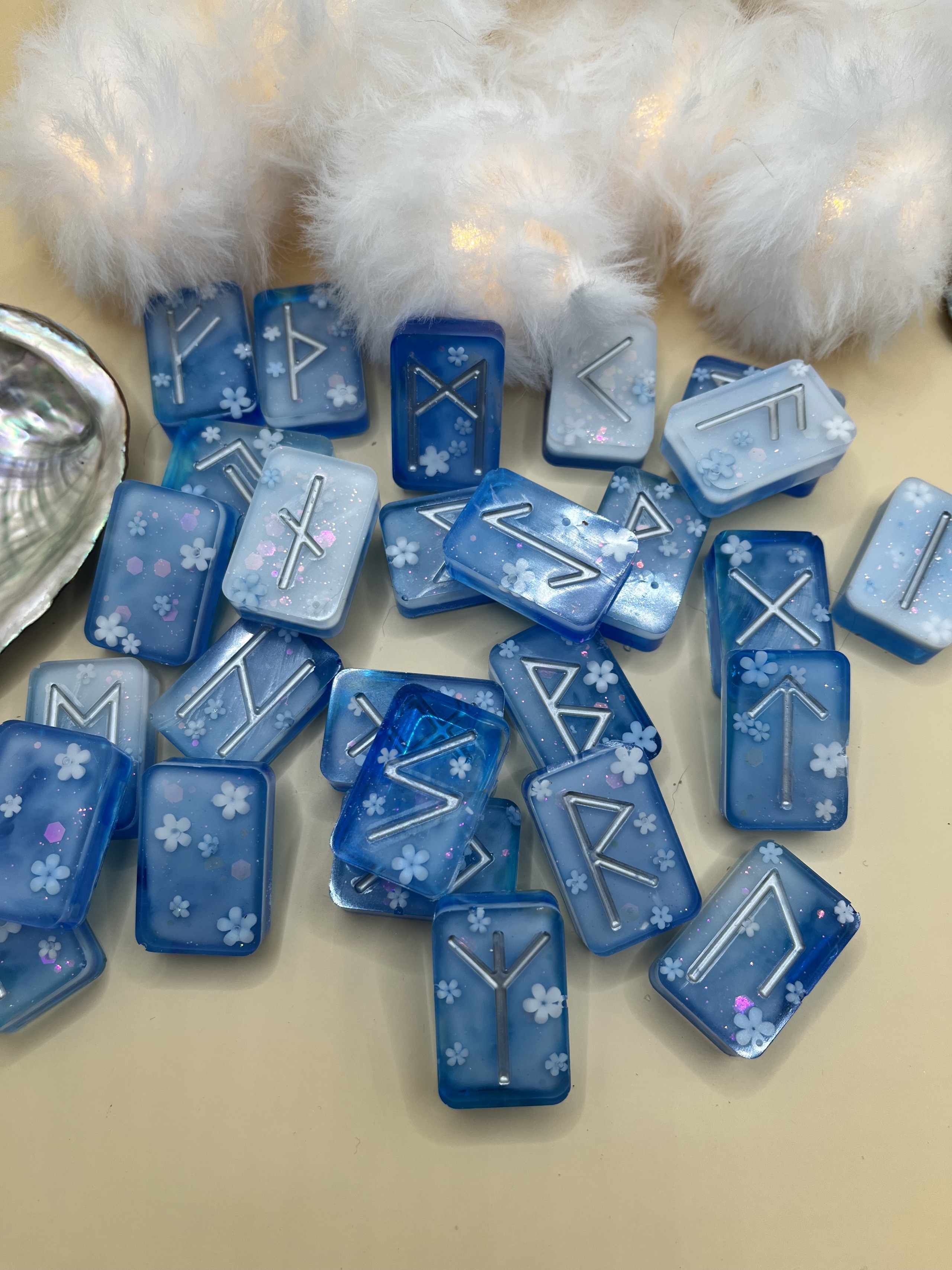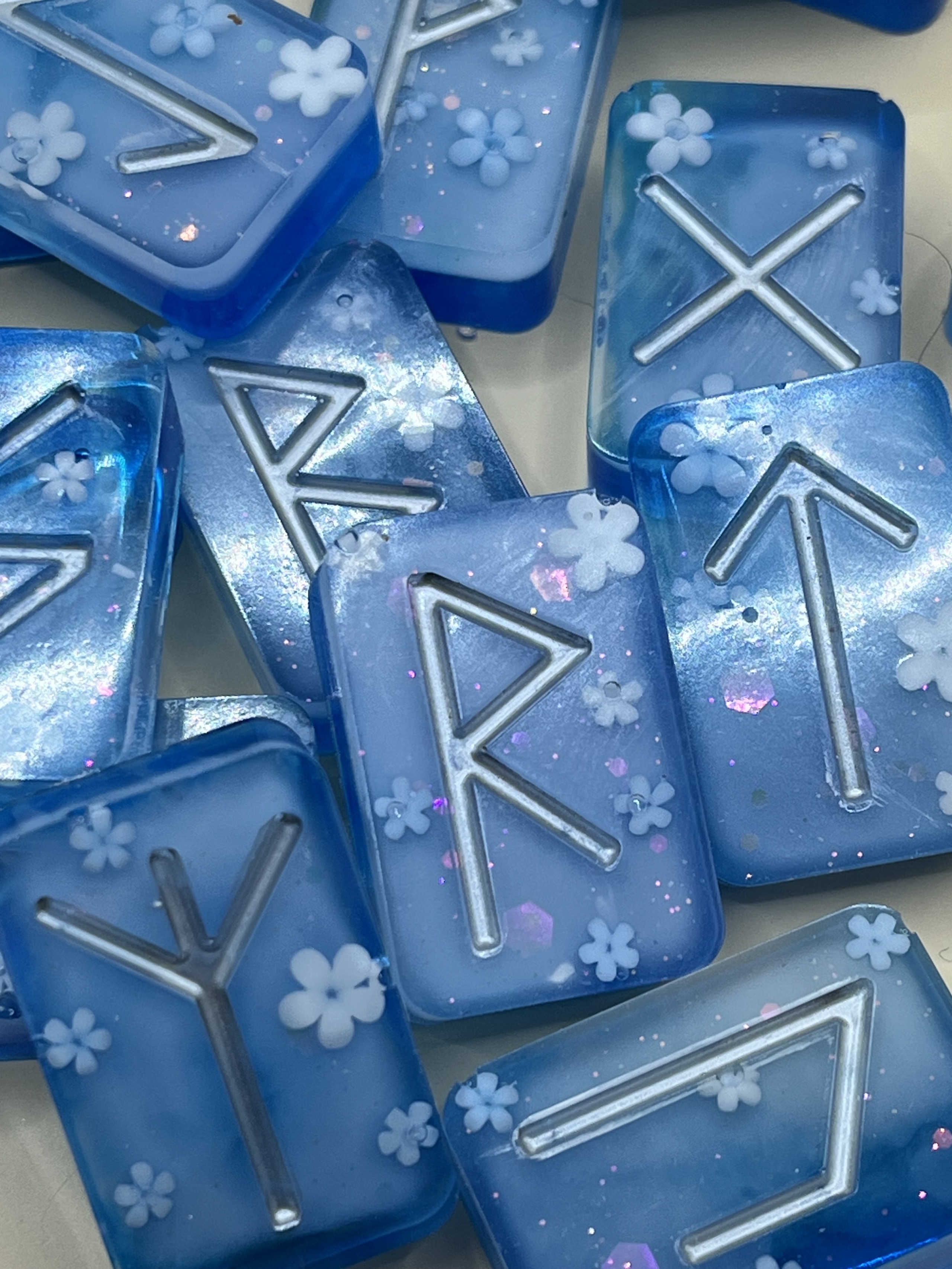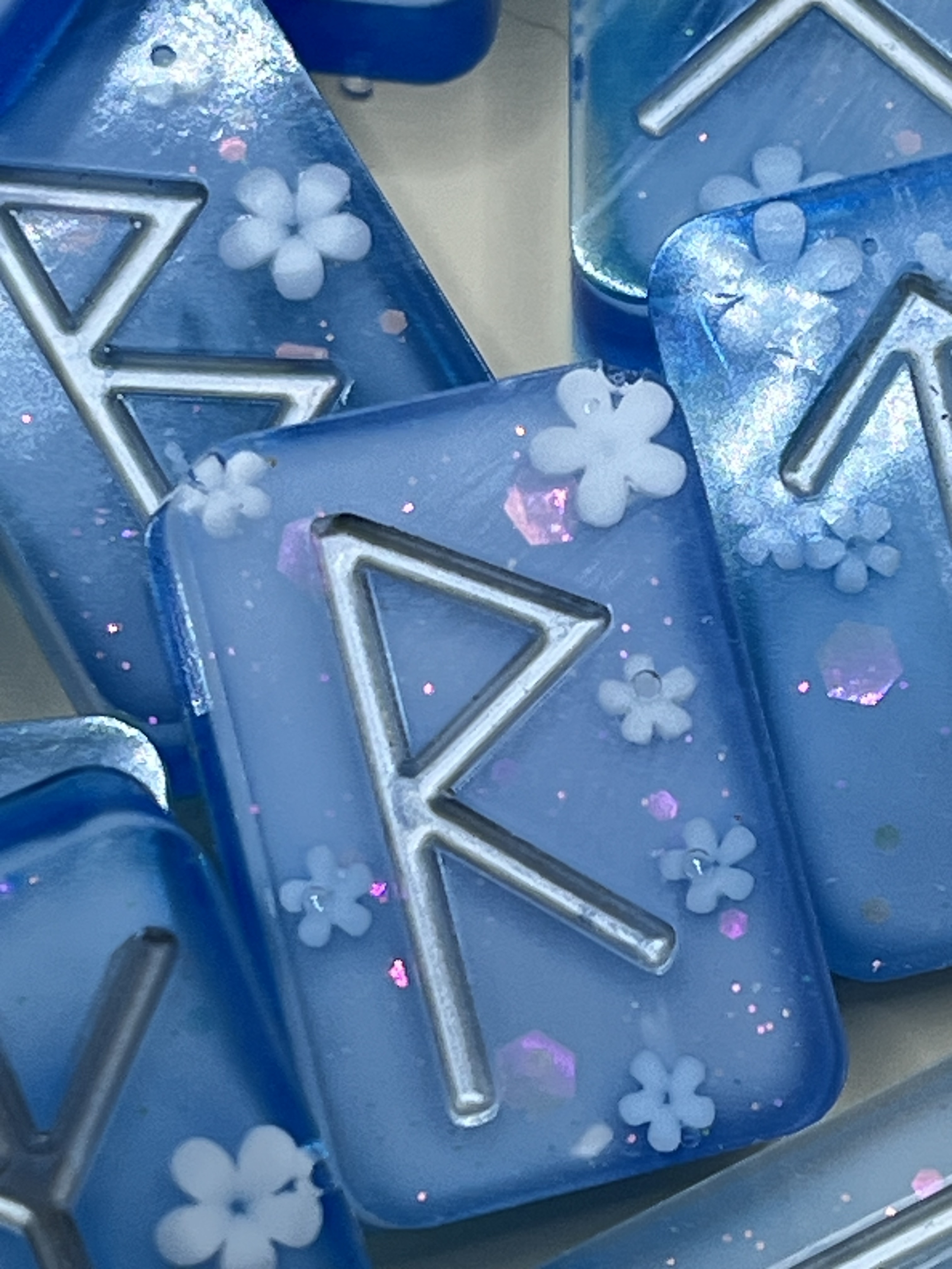 Diese liebevoll von Hand gegossenen Runensteine aus Epoxidharz vereinen uraltes Wissen mit moderner Kunst. Jeder Stein trägt ein Symbol aus dem älteren Futhark – Zeichen der Kraft, Weisheit und Intuition.