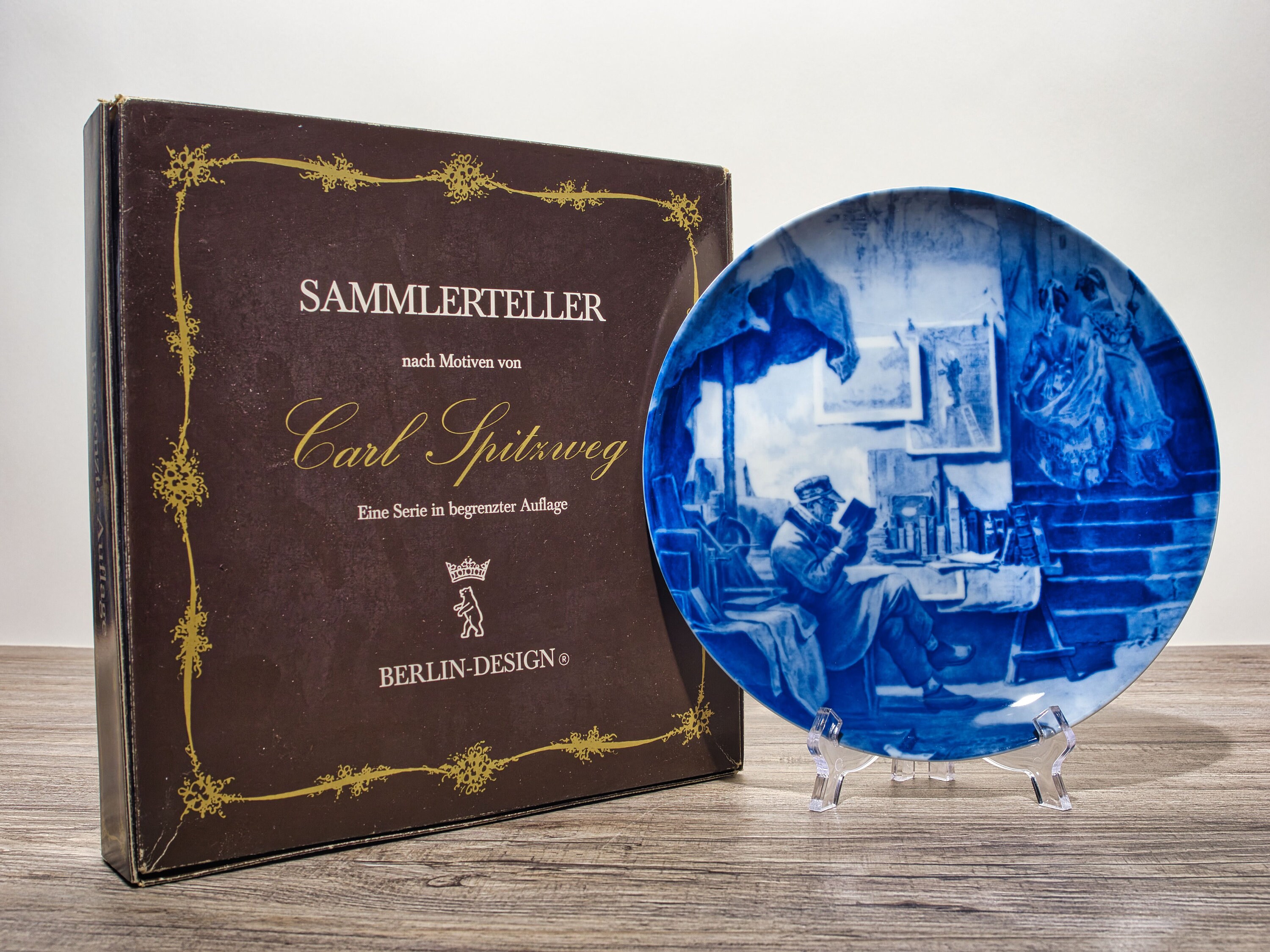 Der abgebildete Porzellanteller inkl. seinem Karton.
