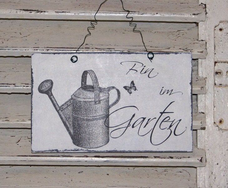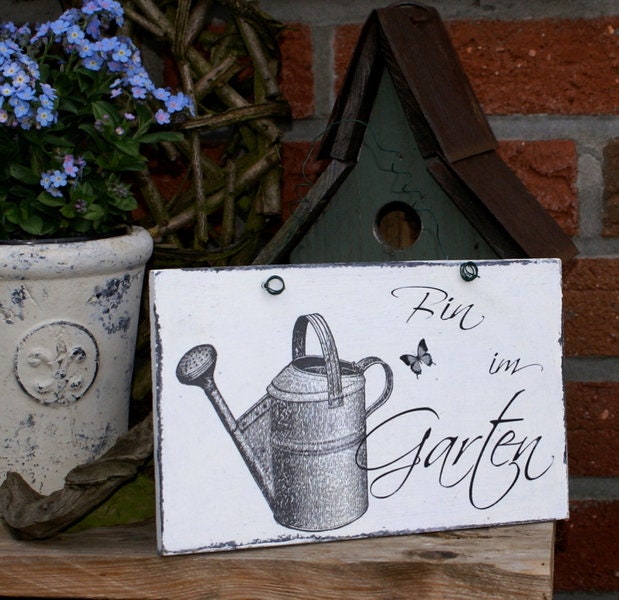 Schild Bin im Garten Shabby Chic