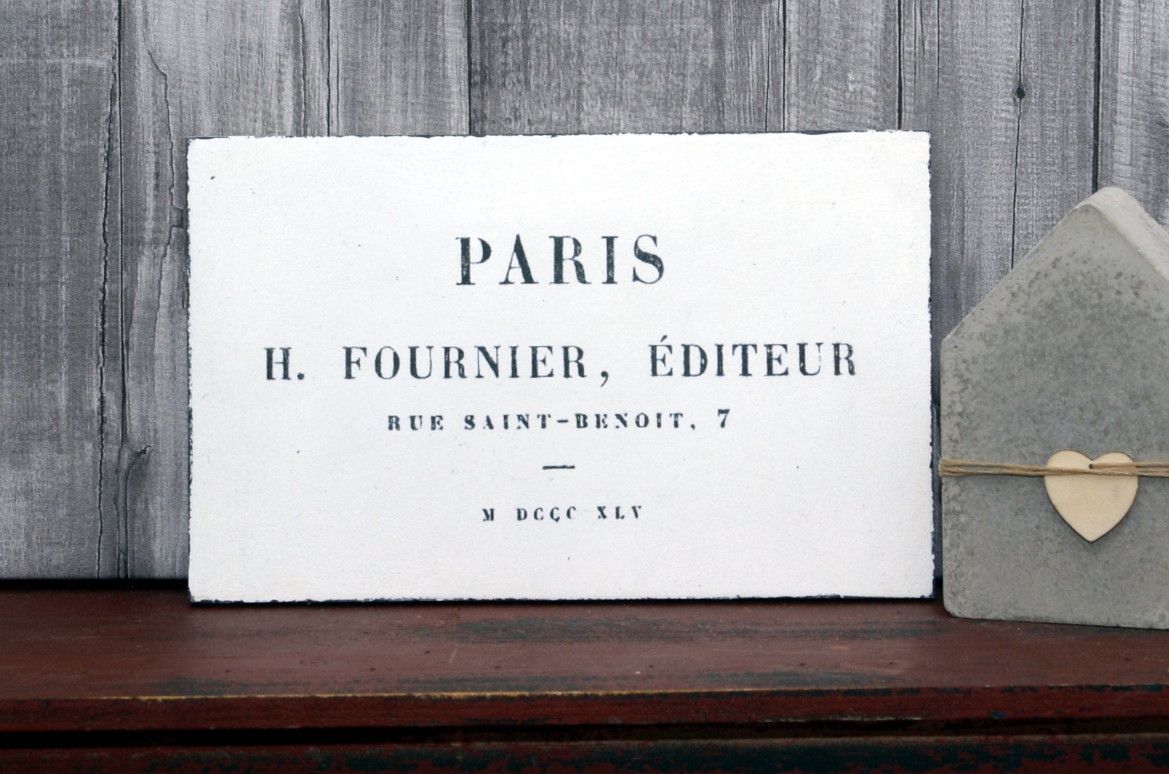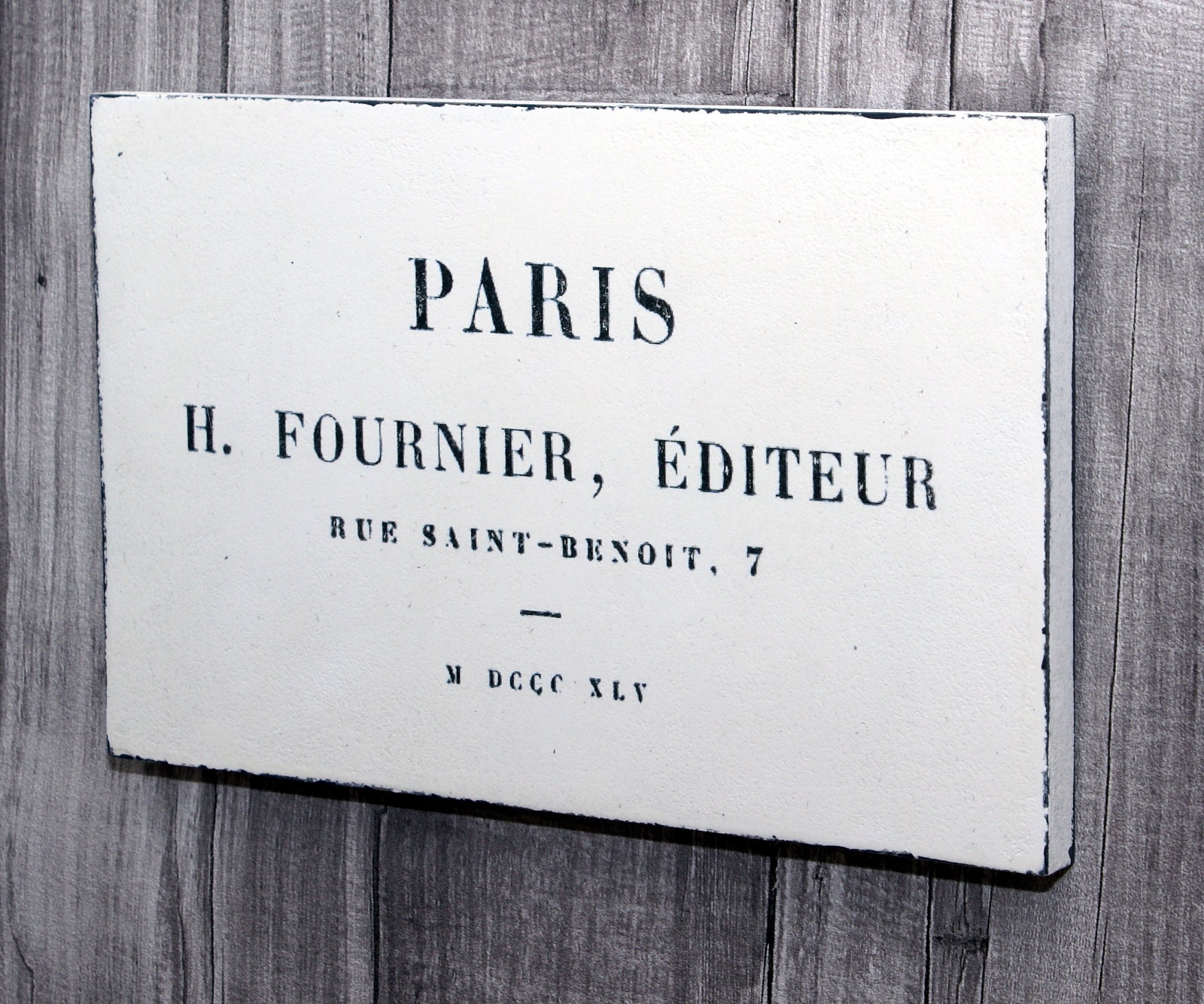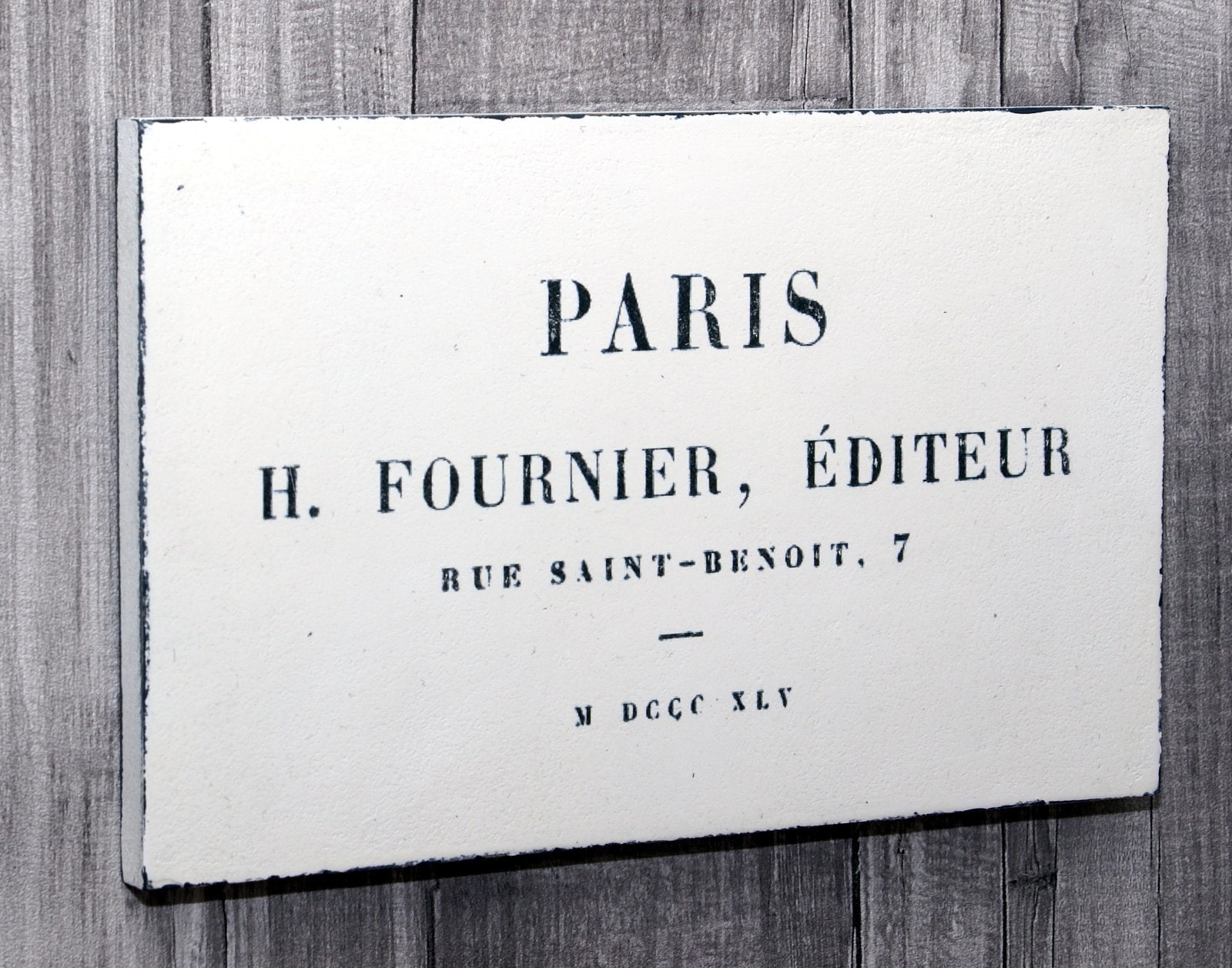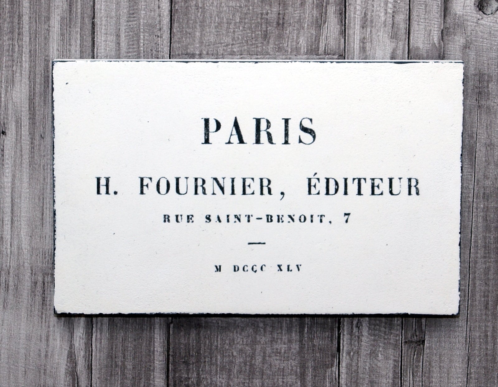 Nostalgisches Türschild mit einer Adresse in Paris, welche aus einem alten französischem Buch stammt