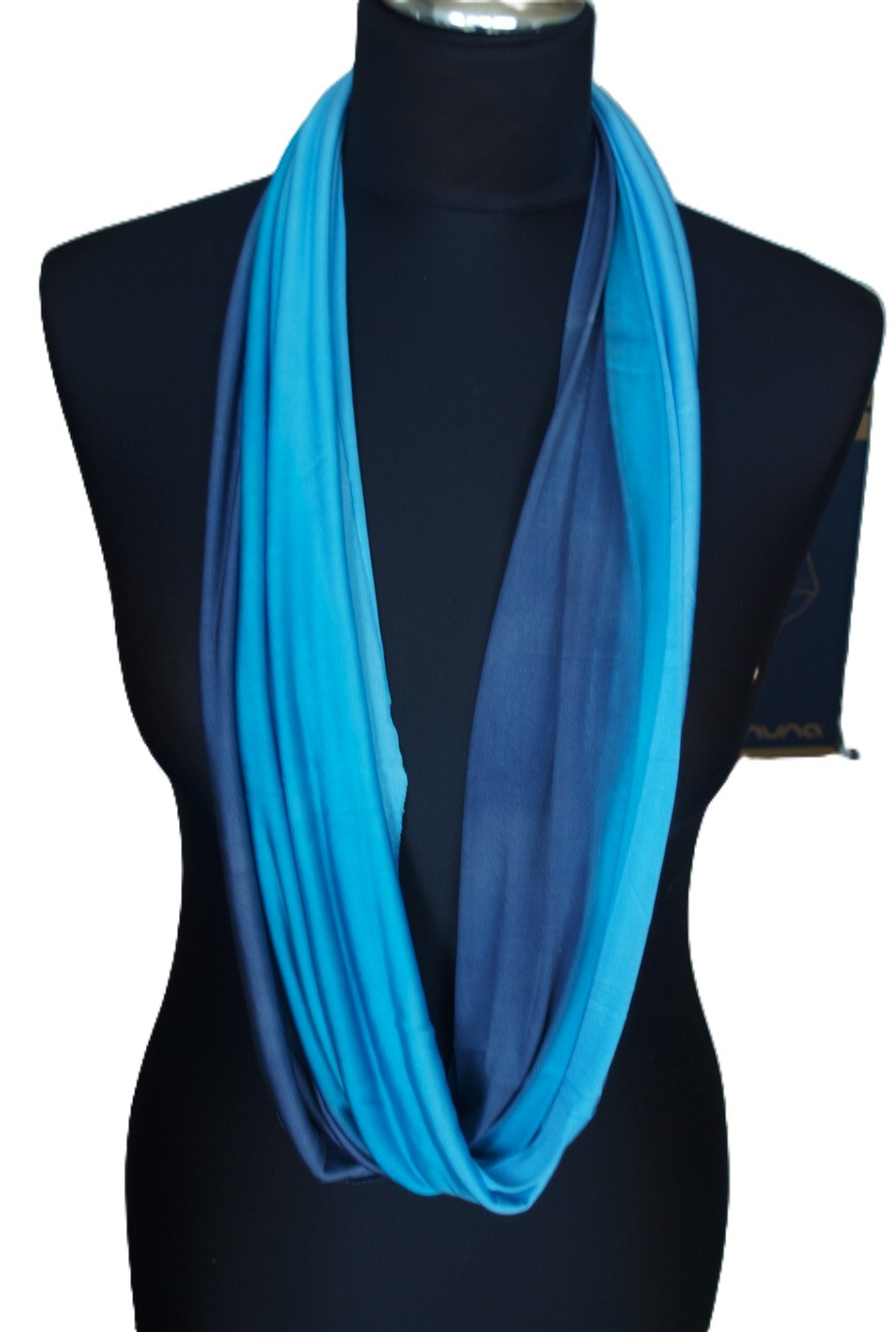 SCHLAUCHSCHAL LOOP SEIDENJERSEY 100% Seide Unikat blau-grau