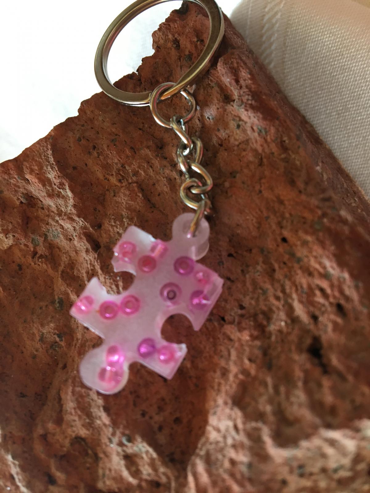 Bunter Schlüsselanhänger aus Gießharz, wurde gegossen und geschleift