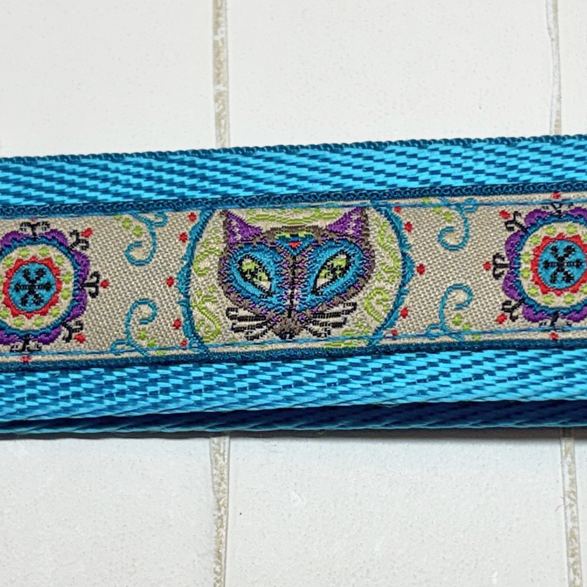 74 Tribal Katzen auf türkisem Webband