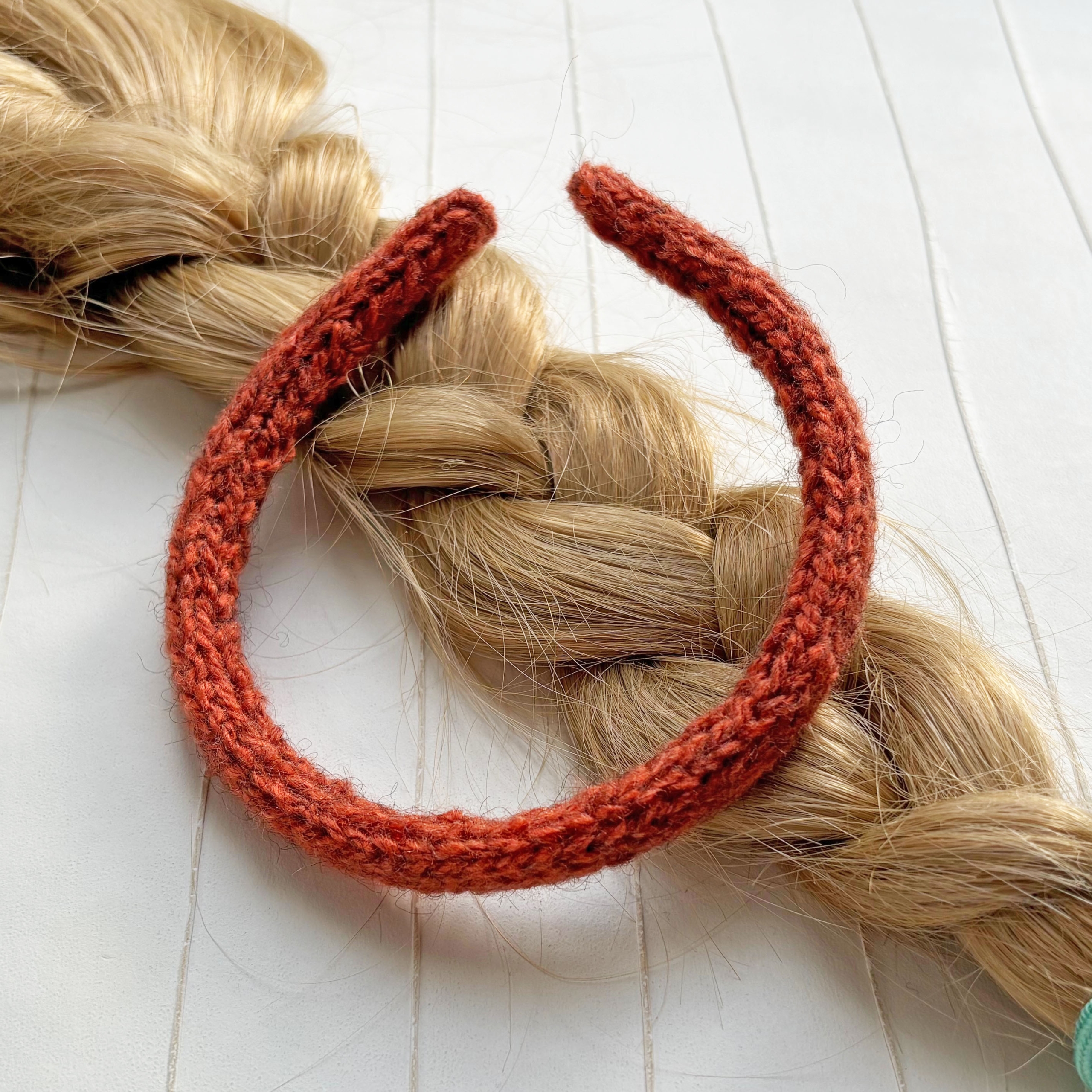 - Schmaler Haarreifen mit gestricktem Bezug, Handarbeit als Icord gestrickt