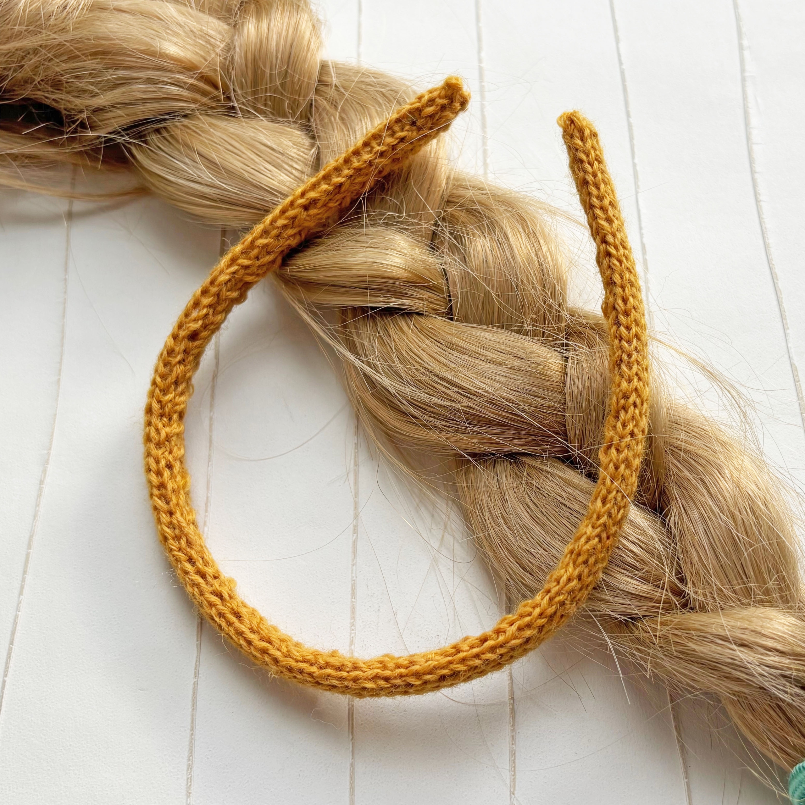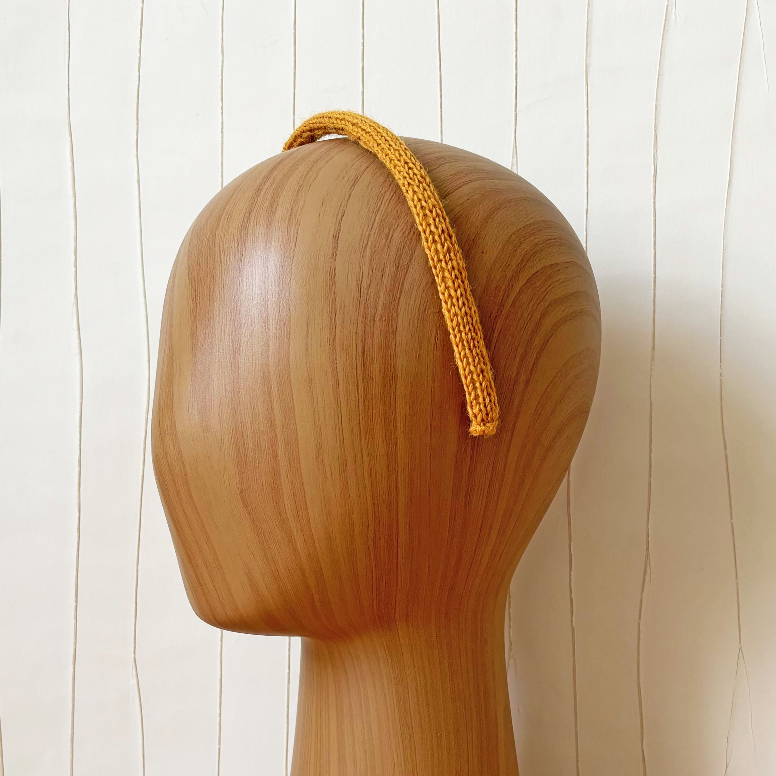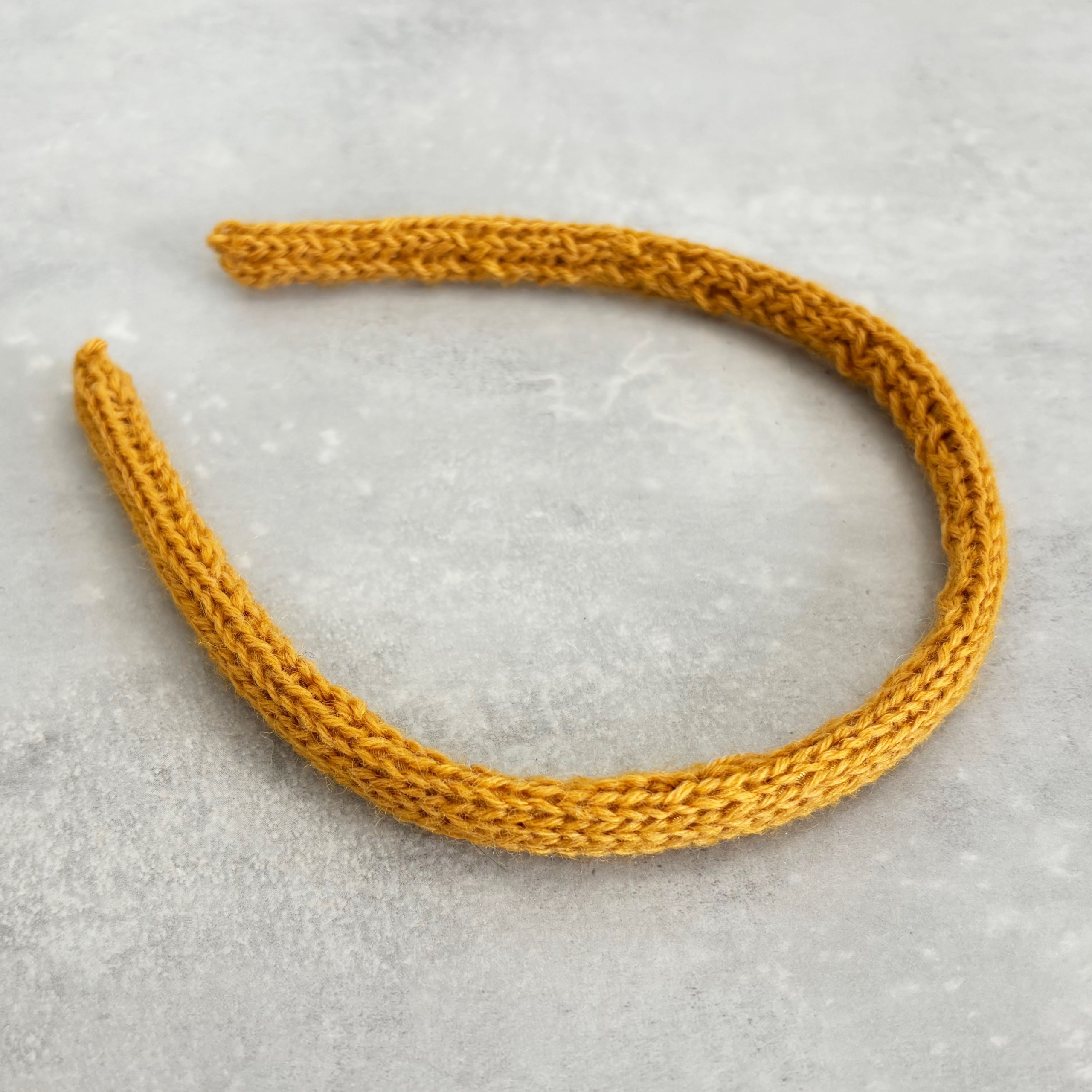Schmaler Haarreifen mit gestricktem Bezug, Handarbeit als Icord gestrickt