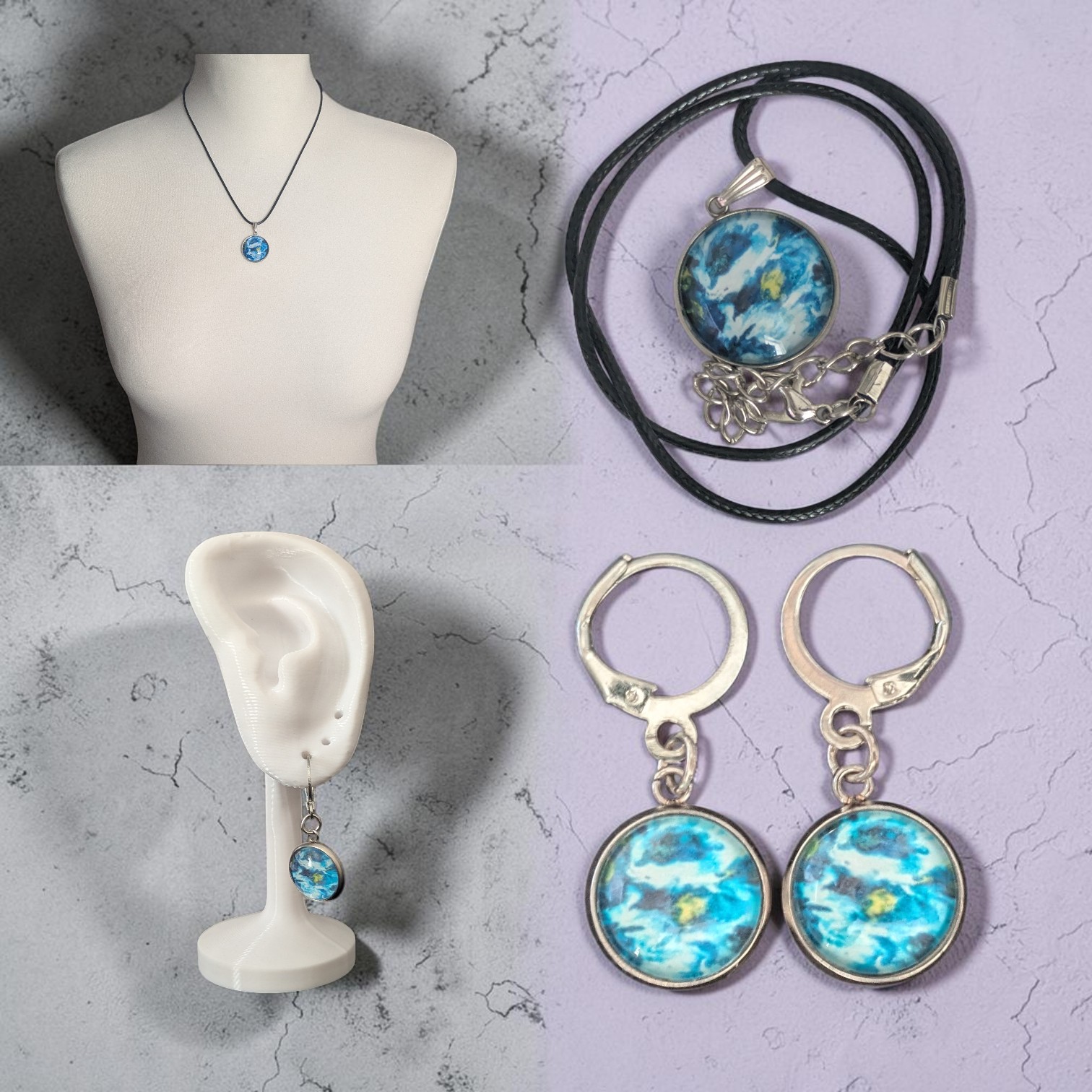 Ein schönes Schmuckset, bestehend aus 1 Paar Ohrringen, 1 Fingerring und 1 Kette mit passendem Anhänger.
