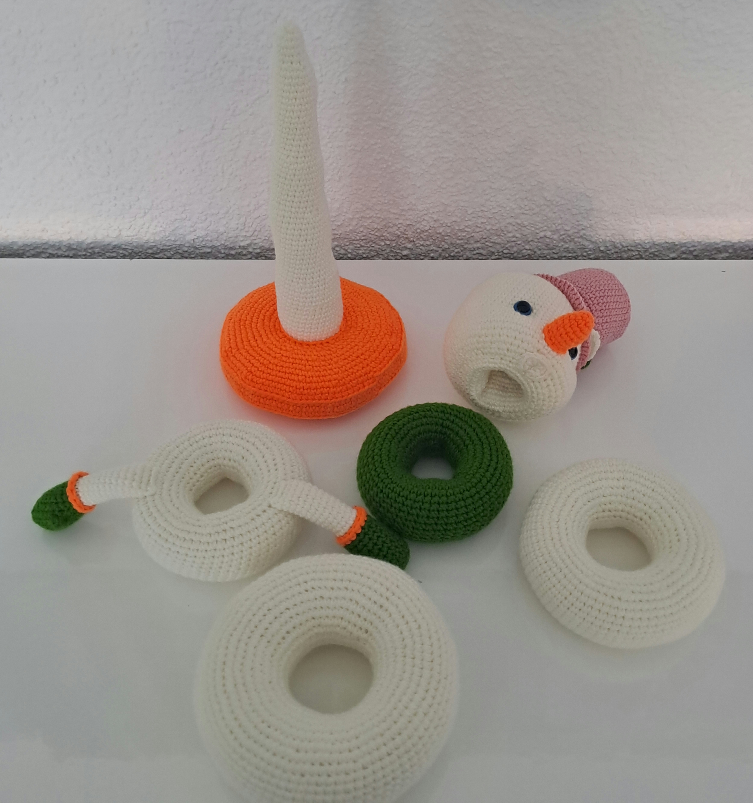 Bitte das Ringspiel regelmäßig auf Beschädigungen überprüfen. Bei losen Nähten oder sich lösenden Teilen das Spielzeug sofort aus dem Gebrauch nehmen.