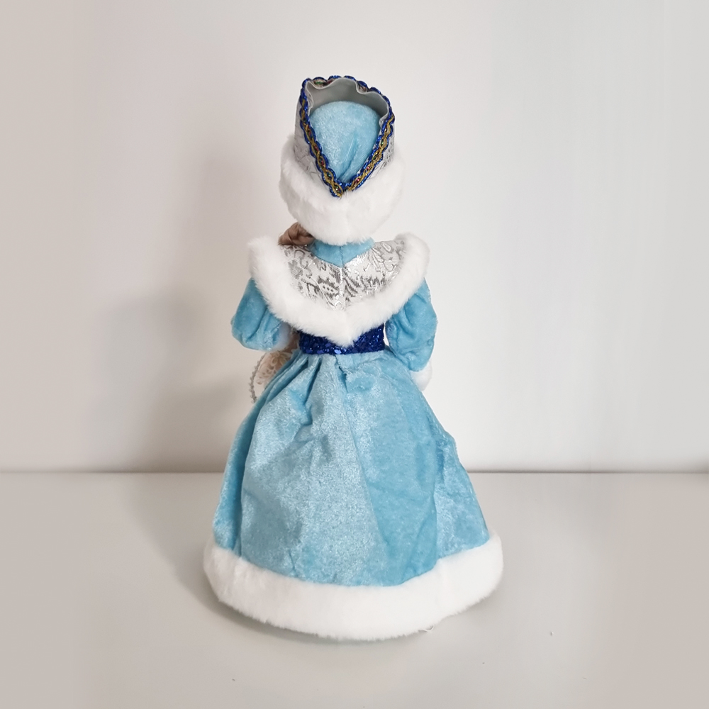 Die Schneeprinzessin mit Fach für Süsswaren und kleine Geschenke ist per Hand gearbeitet und hat eine Größe von ca. 35 cm. Sie ist gekleidet mit einem hellblauen Pelzmantel und passender Mütze, die von ukrainischen Künstlern handgeschneidert wurden. Am Boden hat sie auch ein Geschenkefach für Süßwaren oder andere Kleinigkeiten, das mit einem Reissverschluss geöffnet wird. Originalverpackt und unbenutzt!