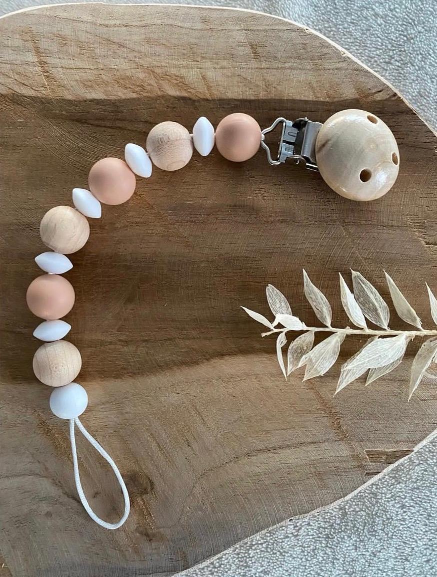 Liebevoll von uns gefertigte Schnullerkette, bestehend aus Holz und Silikon. Die Schnullerkette eignet sich hervorragend als Geschenk zur Geburt oder als Geschenk zur Babyparty. Durch die Möglichkeit der Personalisierung machst Du diese zu einem Unikat.