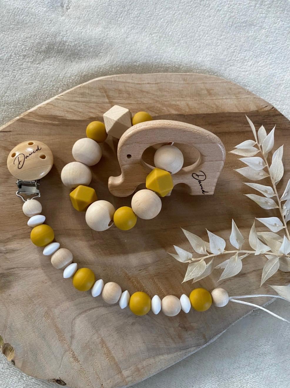 Set aus Schnullerkette & Greifring. Auch mit Personalisierung.