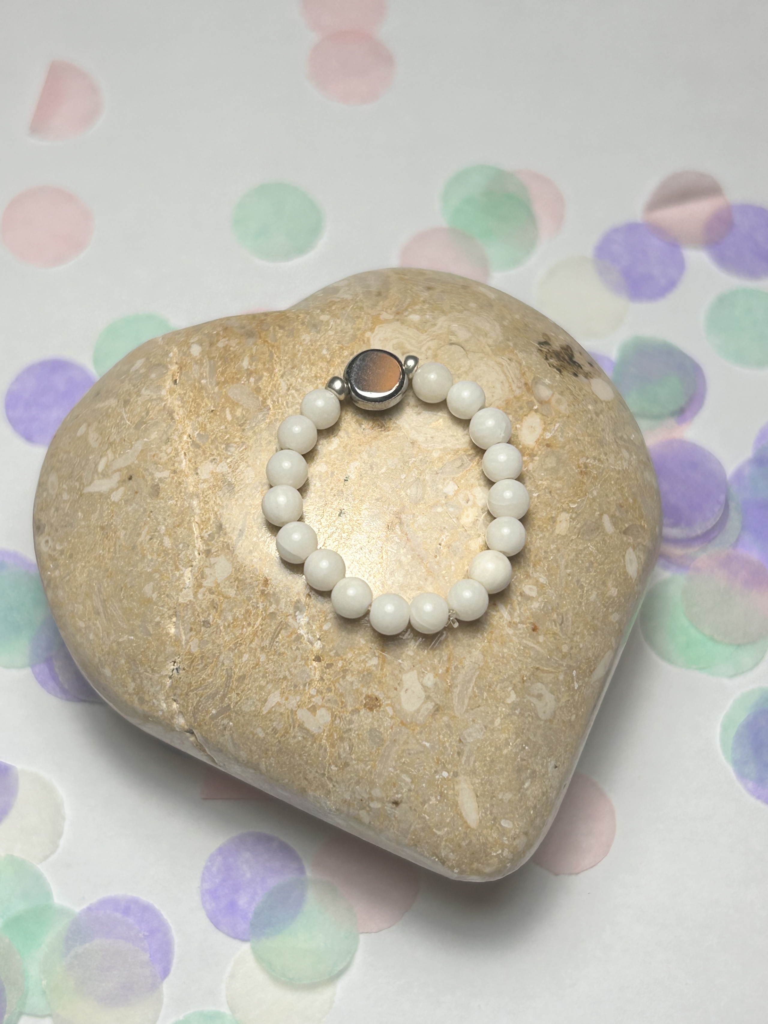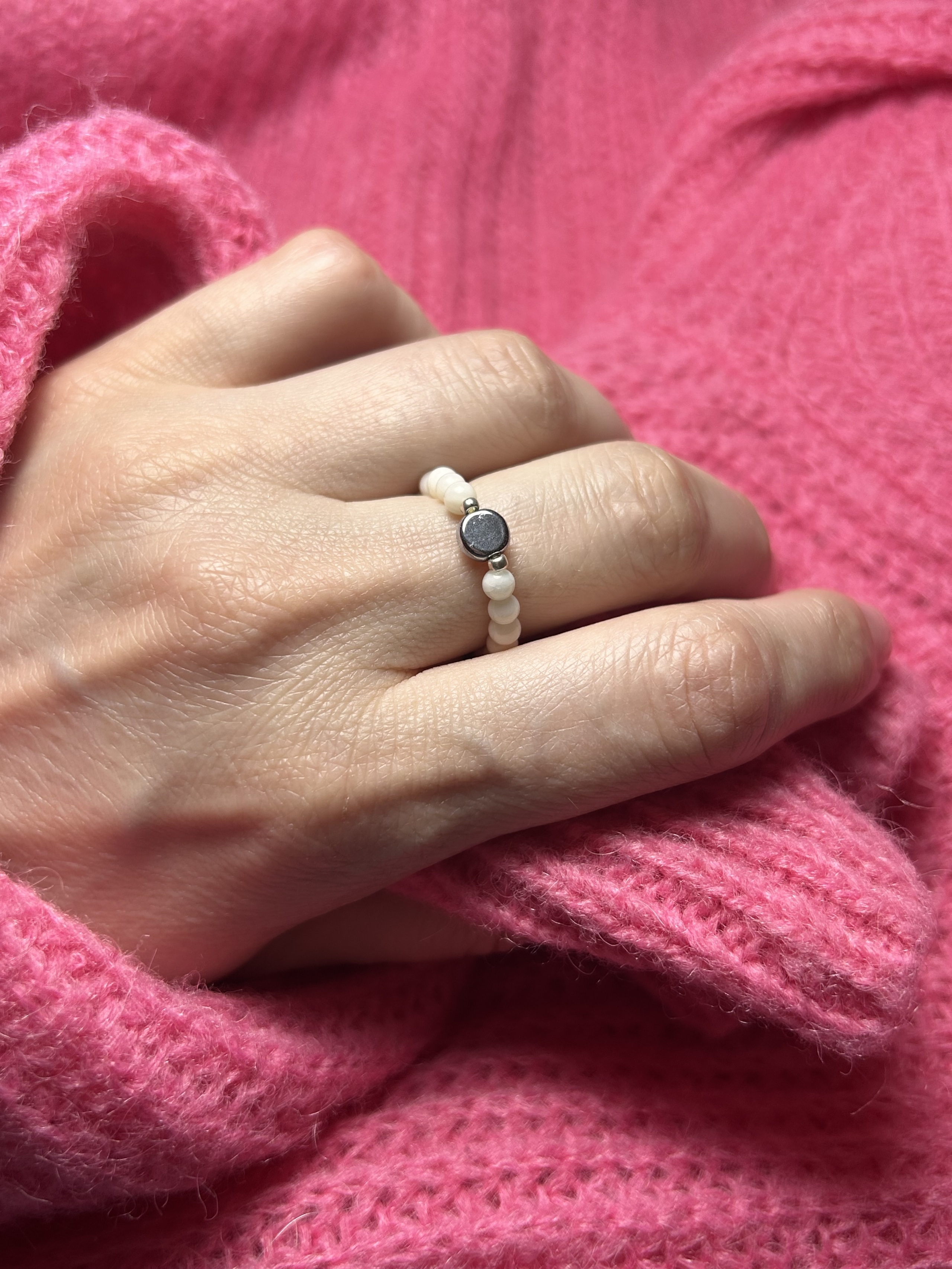 Schöner, elastischer Ring aus Achat Stein und Perlen.