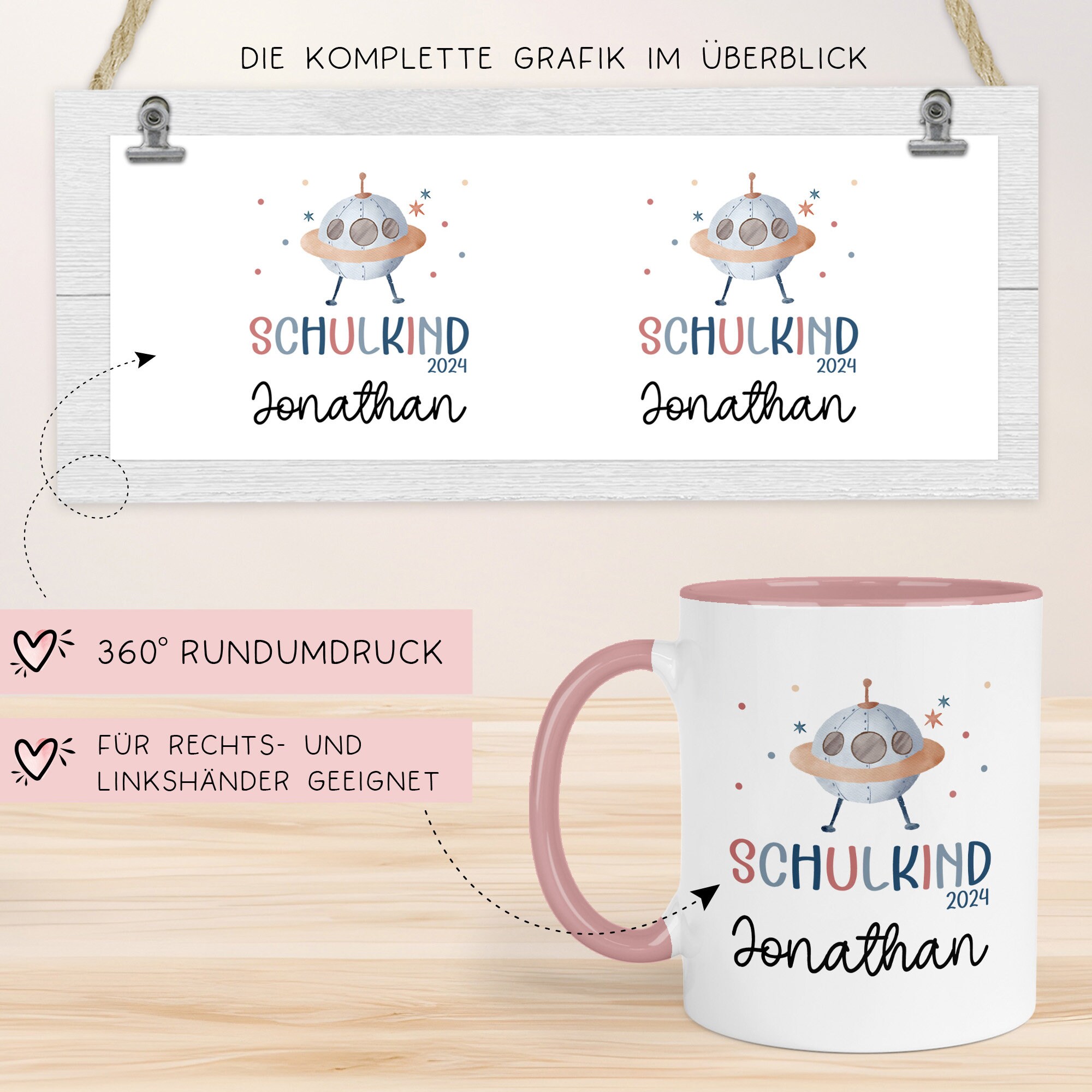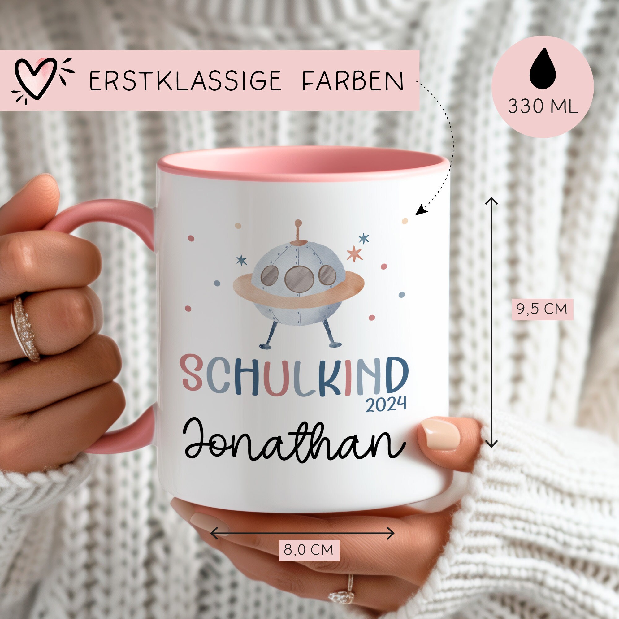 Schulkind 2024 Tasse Einschulungsgeschenk mit UFO-Weltraum-Motiv Kindertasse - personalisierte Kakao Tasse mit Namen