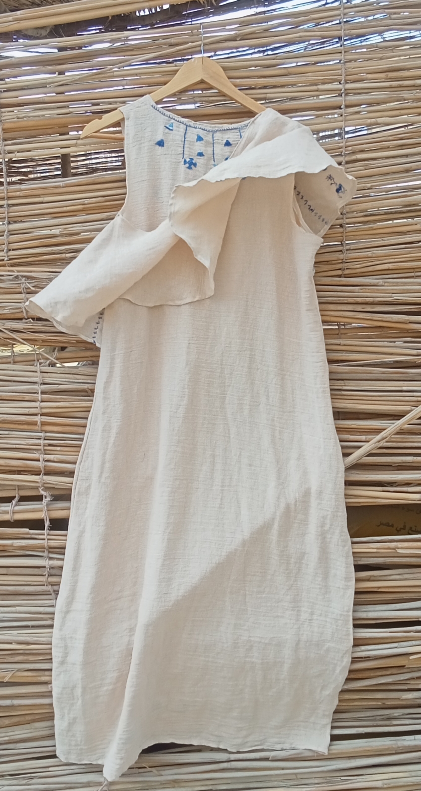 Dieses hübsche Kleid aus 100% ägyptische Leinen, bestickt aus Baumwolle/Seide, erfüllt jeden Wunsch, nach Bequemlichkeit, Wohlfühlen und Eleganz.