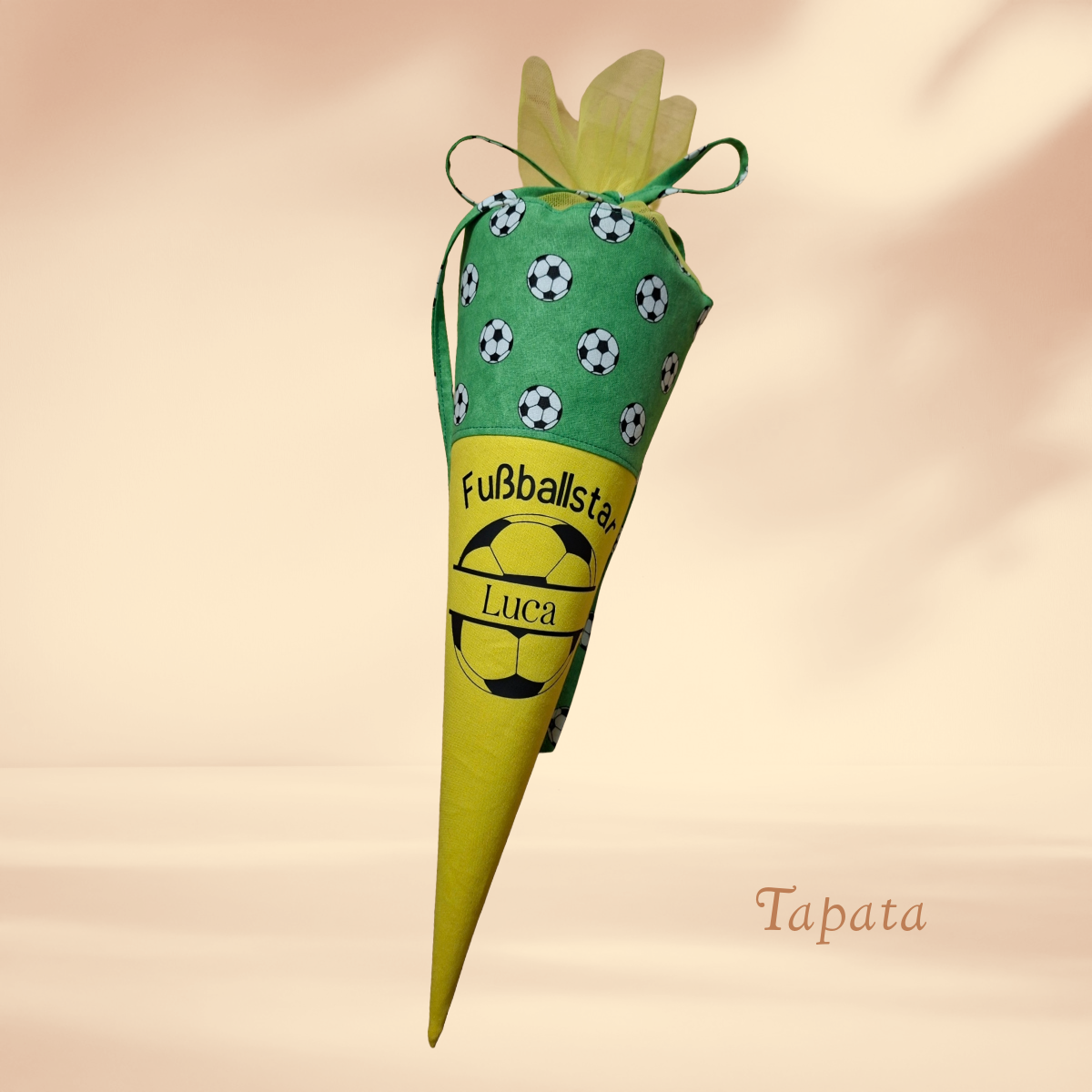 ➡ Angeboten wird eine Schultüteim Mini-Format. Ideal als Vorschultüte, Kindergartentüte oder als kleine Geschenktüte als Mitbringsel zur großen Feier bei der Einschulung. Auch alternativ eine Geschenketüte für kleine oder große Fußballfans.