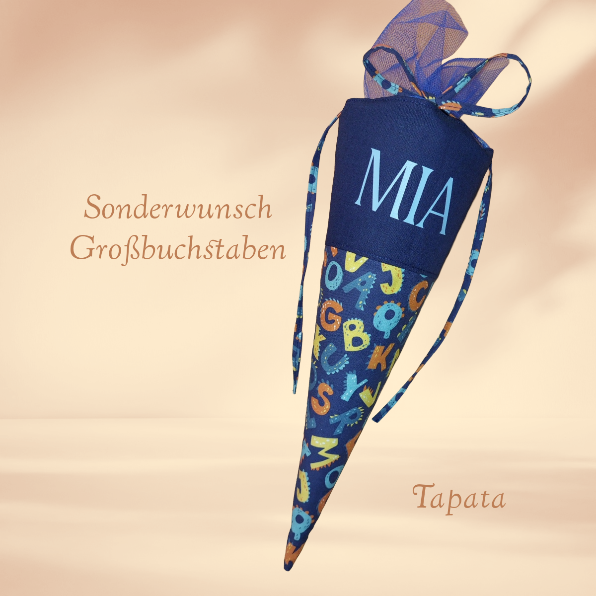 Die Schultüte kann auch als große Tüte (70cm) angefertigt werden. Wichtig: Bitte hierzu gesondert Kontakt mit mir aufnehmen, da der Stoff nur in begrenzten Umfang vorhanden ist. Eine Spezialanfertigung wird dann auf Anforderung eingestellt.