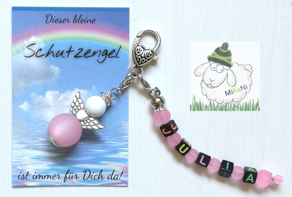 Wunderschöne Schutzengel mit Namensanhänger. Mit Karabiner oder Schlüsselring