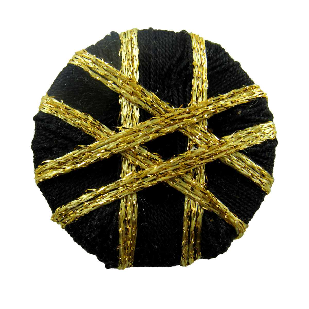 Verleihe deinen Kleidungsstücken oder DIY-Projekten einen Hauch von Luxus! Dieser kunstvoll handgefertigte Zwirnknopf besticht durch seine klassische Farbkombination aus tiefschwarzem Garn und glänzenden Akzenten in Gold. Mit einer Größe von ca. 3 cm eignet er sich hervorragend als Verschluss für Strickjacken, Mäntel oder als besonderes Accessoire für Kissen und Taschen. Ein echtes Schmuckstück traditioneller Handwerkskunst!