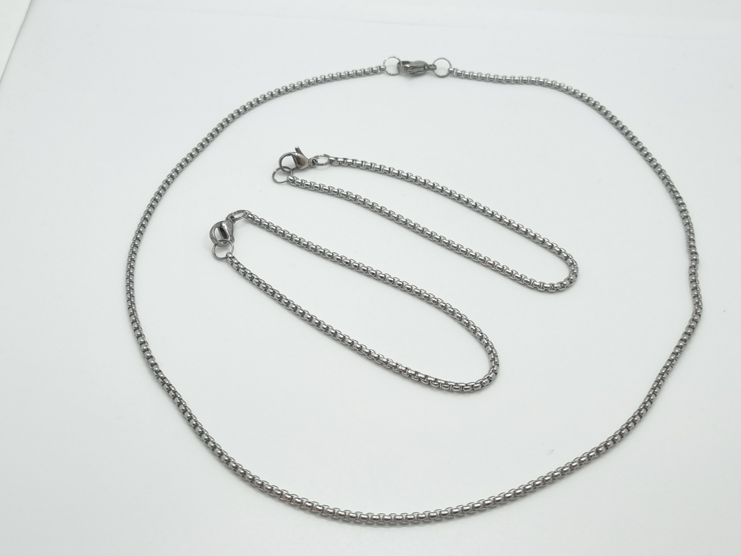 3-teiliges Set bestehend aus einer Edelstahl-Kette und 2 Armbändern.