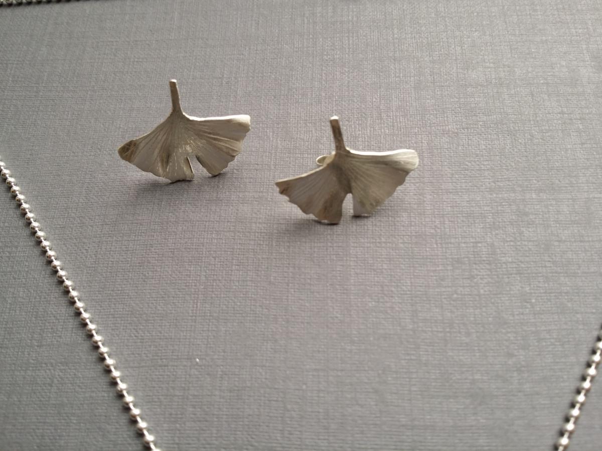 Wunderschönes Ginko-Blatt-Set aus 925/00 Silber, matt gebürstet und am Rand poliert.