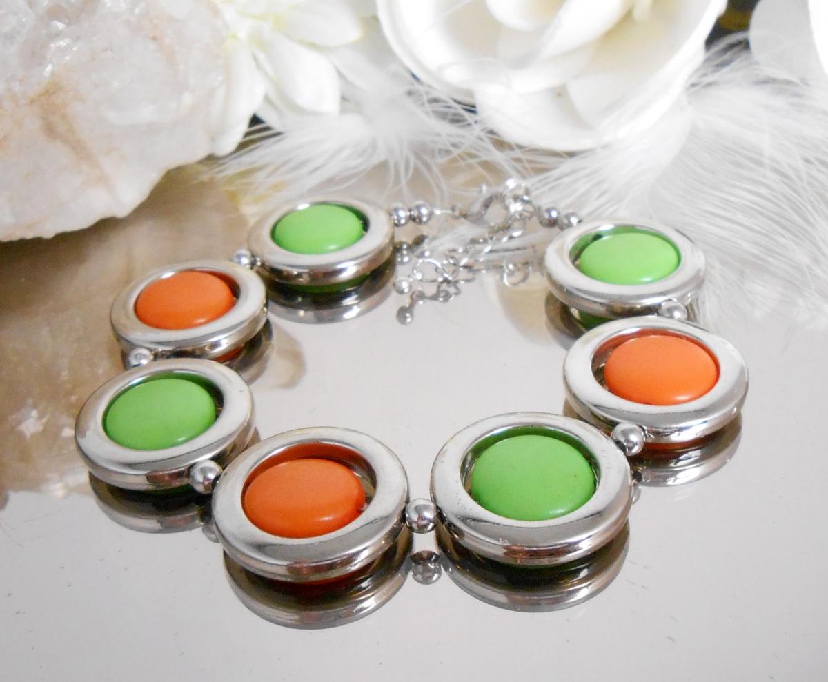 gefertigt aus Acryl Ringen silber und Acryl Scheiben Perlen in Orange + Grün