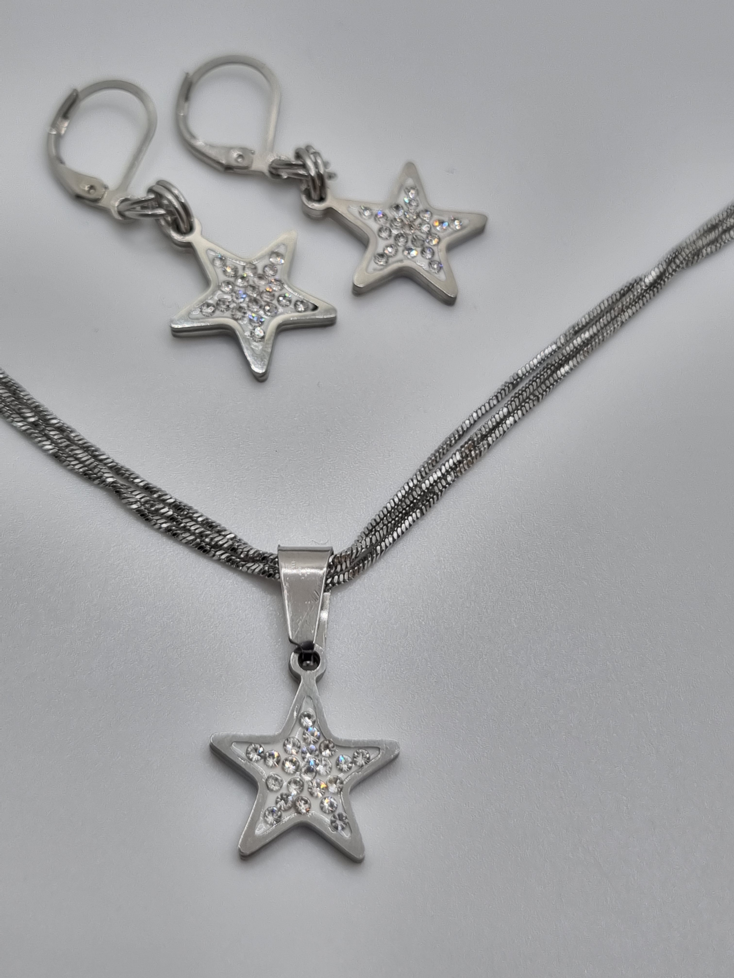 Kette, Sterne und Ohrringe sind aus Edelstahl