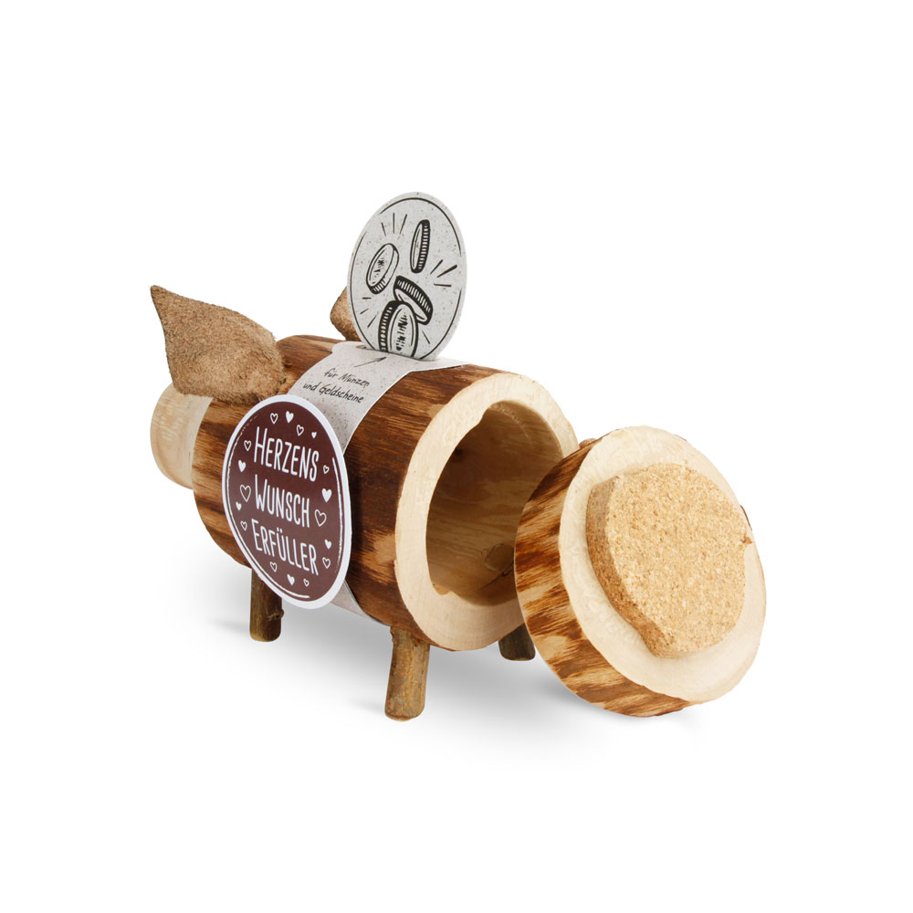 Das Sparschwein „Rudi“ ist ein handgefertigtes Unikat aus naturbelassenem Laubholz und hochwertigem Rindsleder. Jedes Stück entsteht in traditioneller Handarbeit und zeigt die individuelle Maserung des Holzes – genau das macht „Rudi“ so besonders.