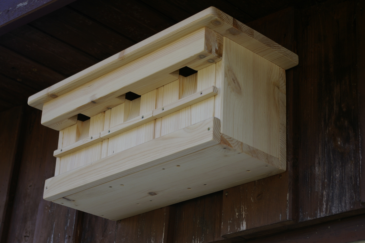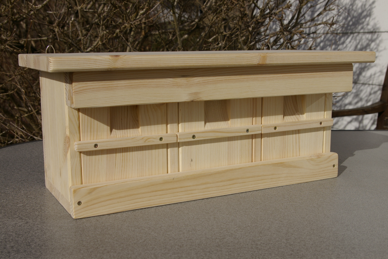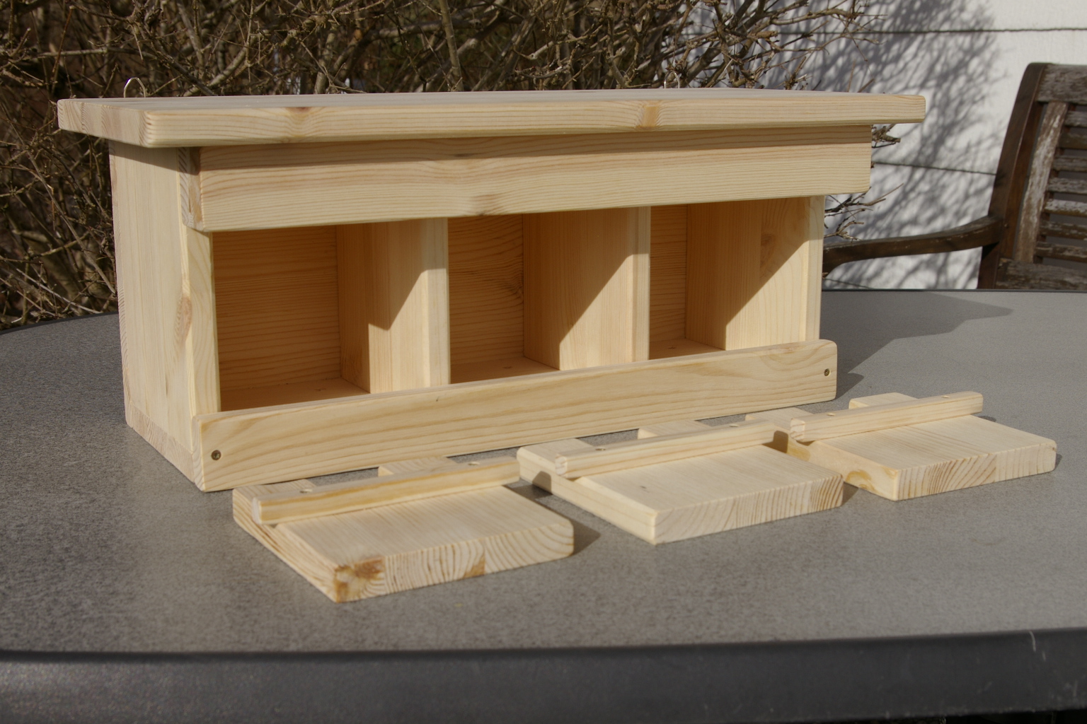 - Der Nistkasten mit 3 Nistkammern eignet sich für Spatzen, Sperlinge aber auch für Kleiber.