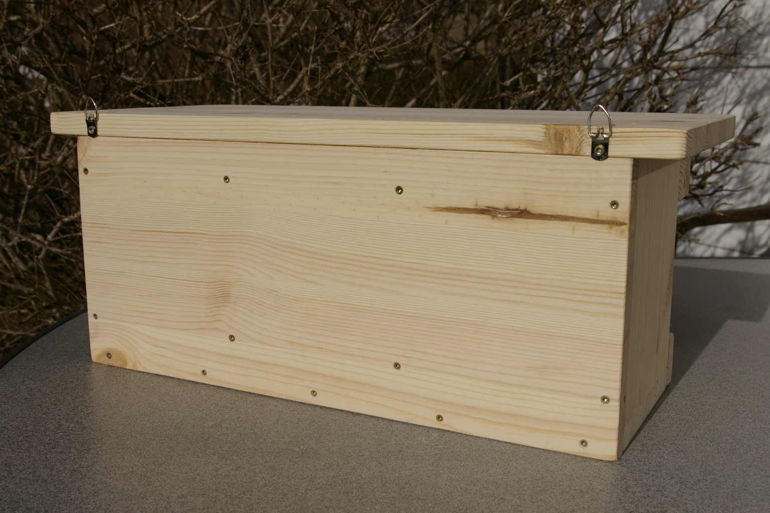 Aus gehobeltem Kiefer/Fichtenleimholz ( 18 mm dicke) in sorgfältiger Handarbeit hergestellt.