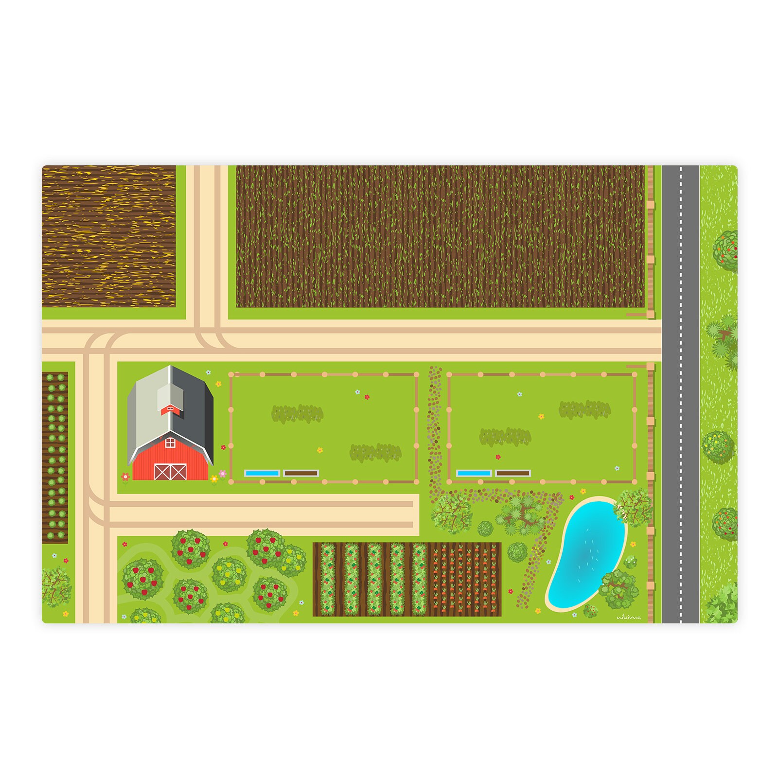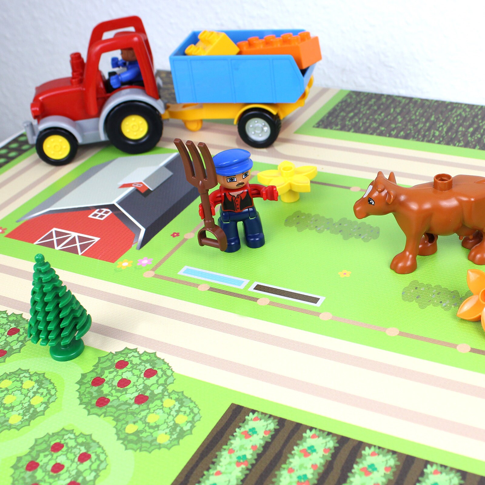 Der Spielteppich auf dem Tisch. Ihr Kind kann aufrecht stehen und bequem mit seinen Tieren spielen.