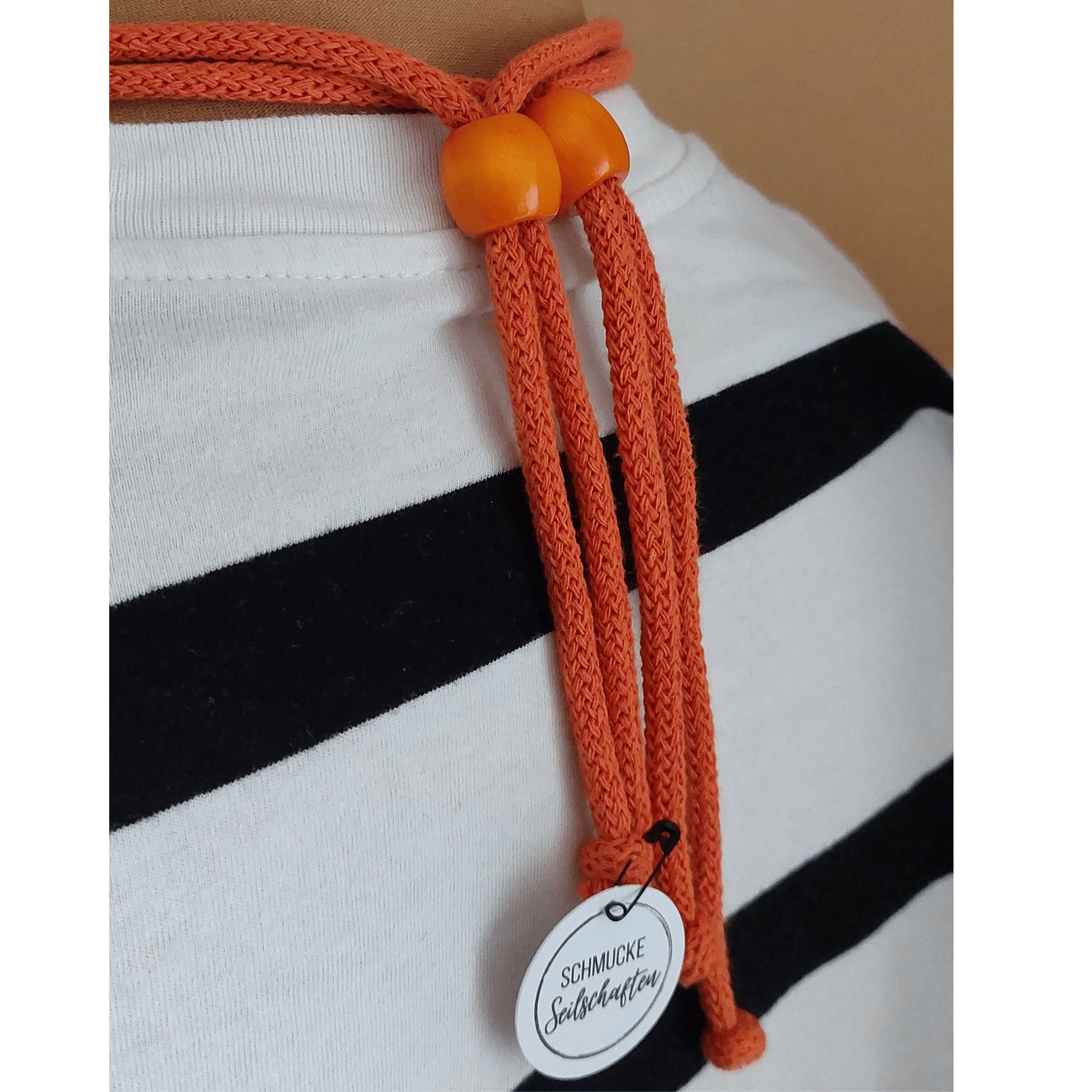- Verstellbar in der Länge durch Holzperlen (siehe Foto).