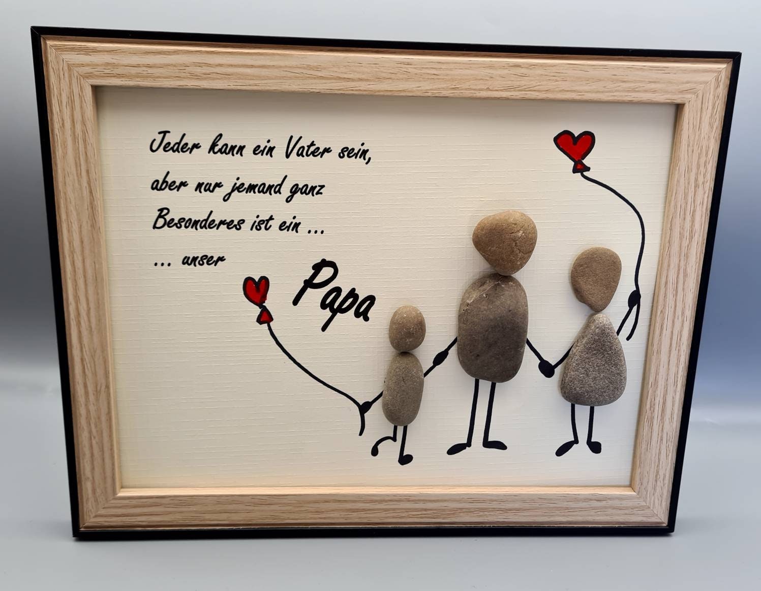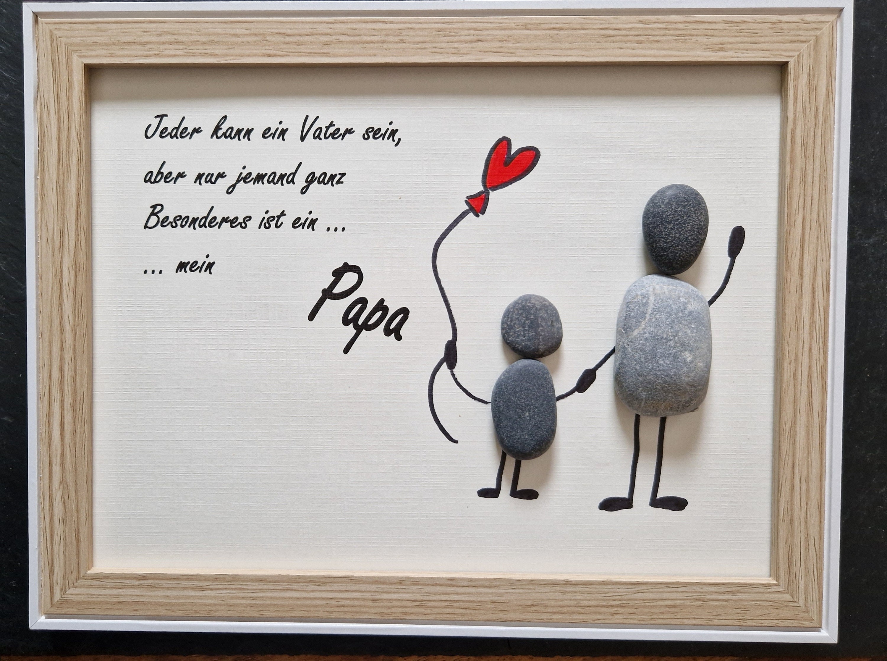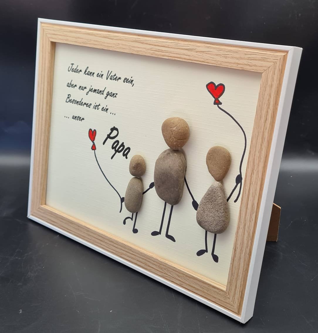 Liebevoll handgefertigtes Steinbild als Geschenk für den lieben Papa zum Vatertag oder einfach mal so. Auch mit einem oder mehreren Kindern möglich.