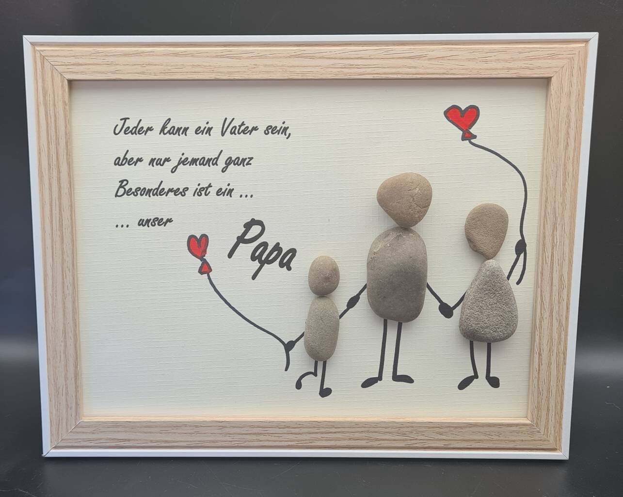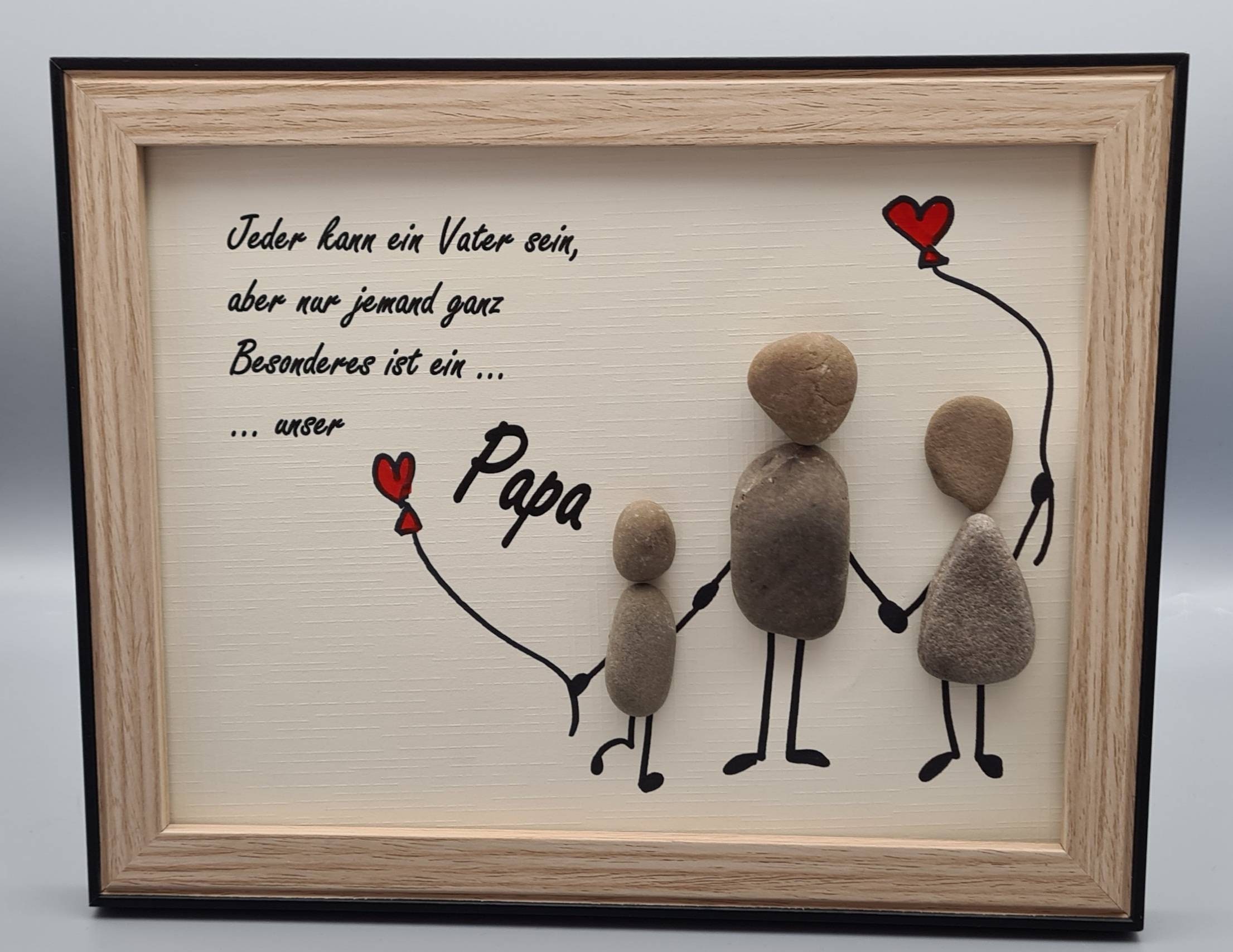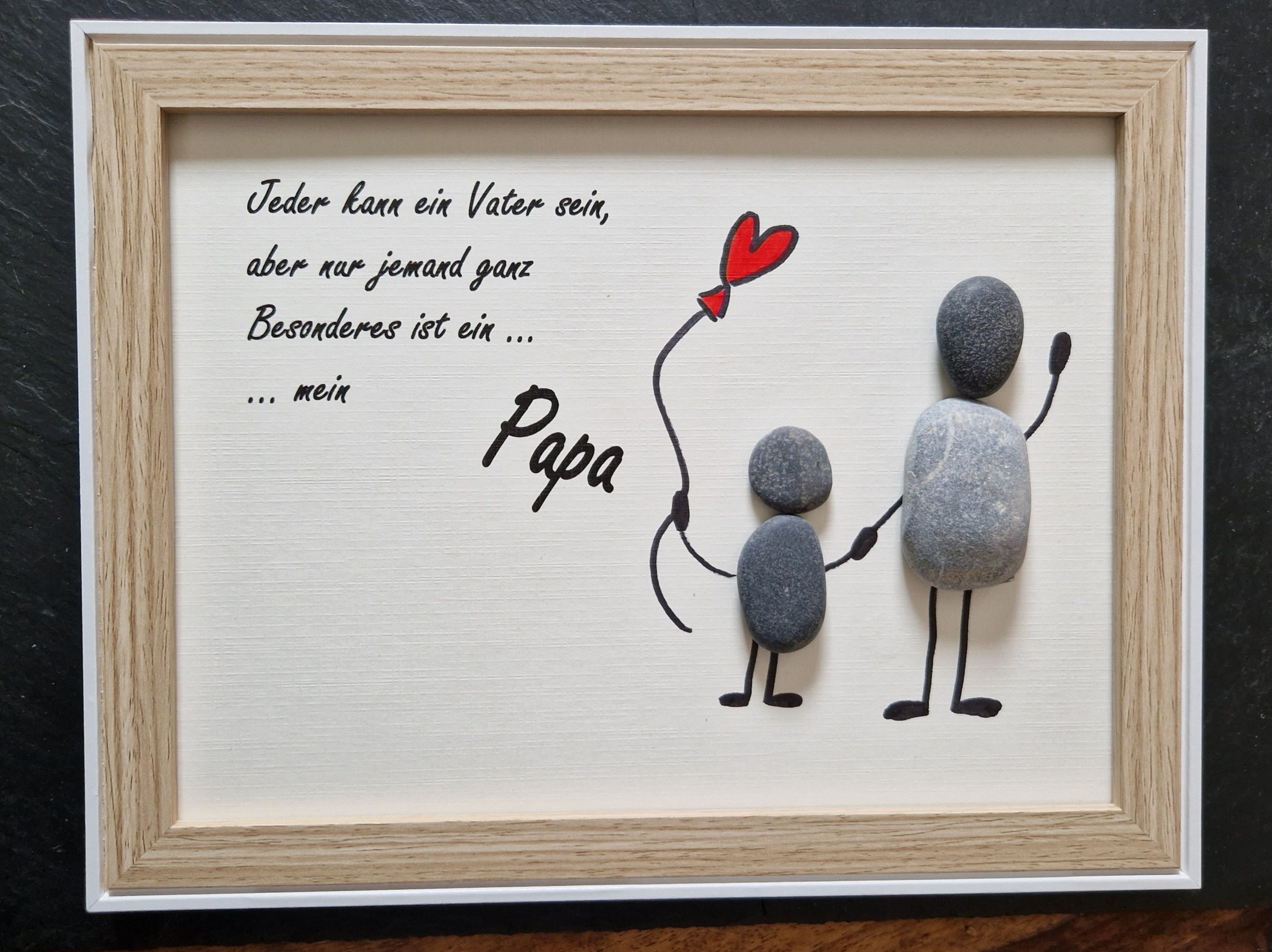 Liebevoll handgefertigtes Steinbild als Geschenk für den lieben Papa zum Vatertag oder einfach mal so. Auch mit einem oder mehreren Kindern möglich.