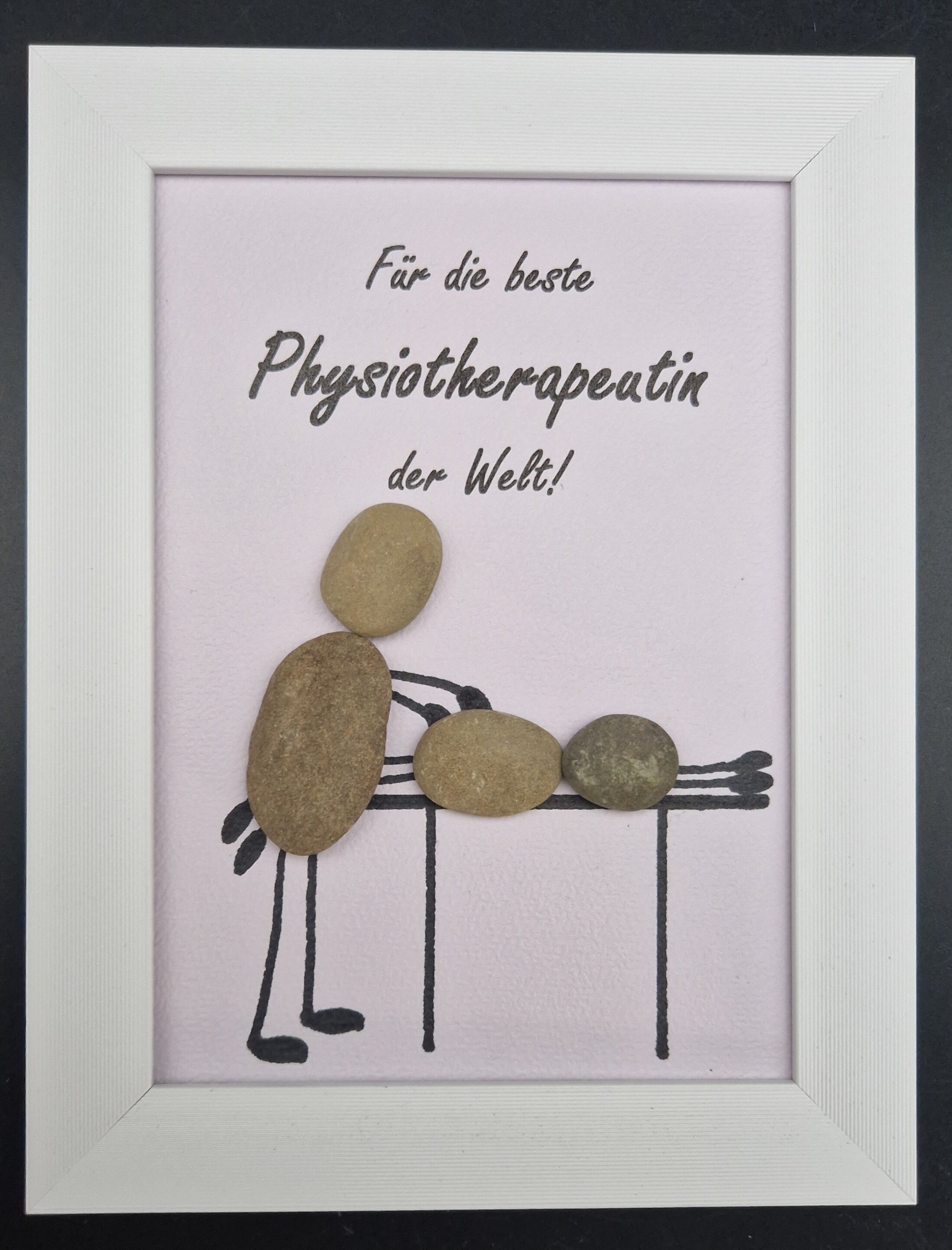 Das ideale Geschenk um Danke zu sagen. Liebevoll handgefertigtes Steinbild als Geschenk für die Physiotherapeutin oder den Physiotherapeuten. Jedes Bild ist ein Unikat und wird direkt nach Bestelleingang angefertigt.