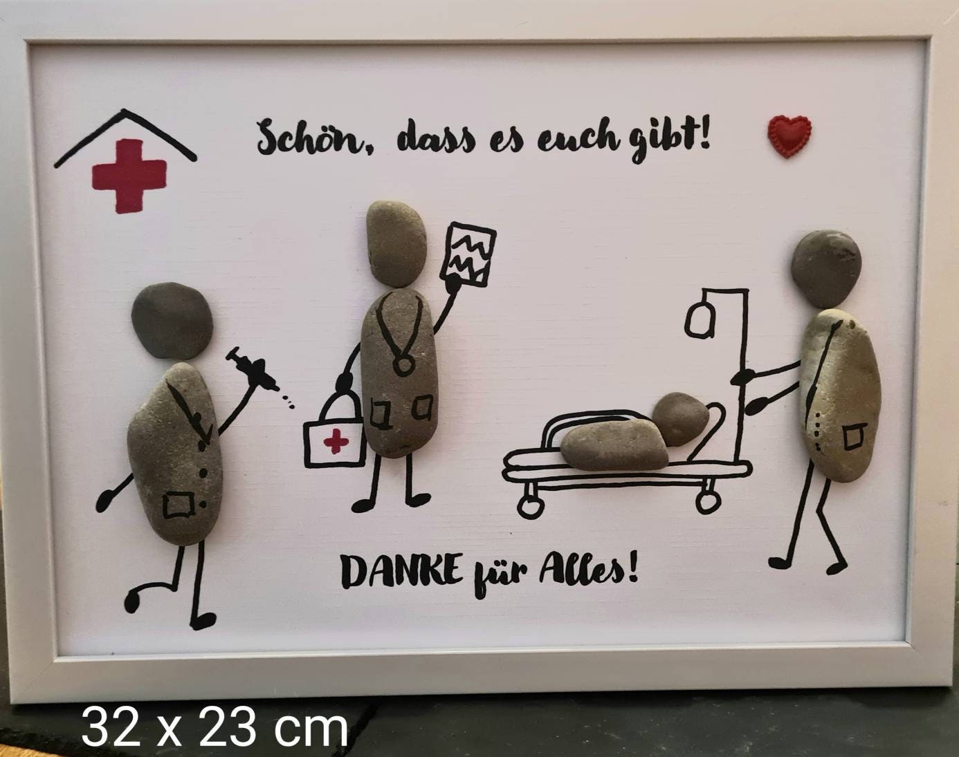 Das ideale Geschenk um Danke zu sagen. Liebevoll handgefertigtes Steinbild als Geschenk um Danke an die Ärzte und die Krankenschwestern im Krankenhaus oder Pflegeheim, Rehaklinik usw. zu sagen.
