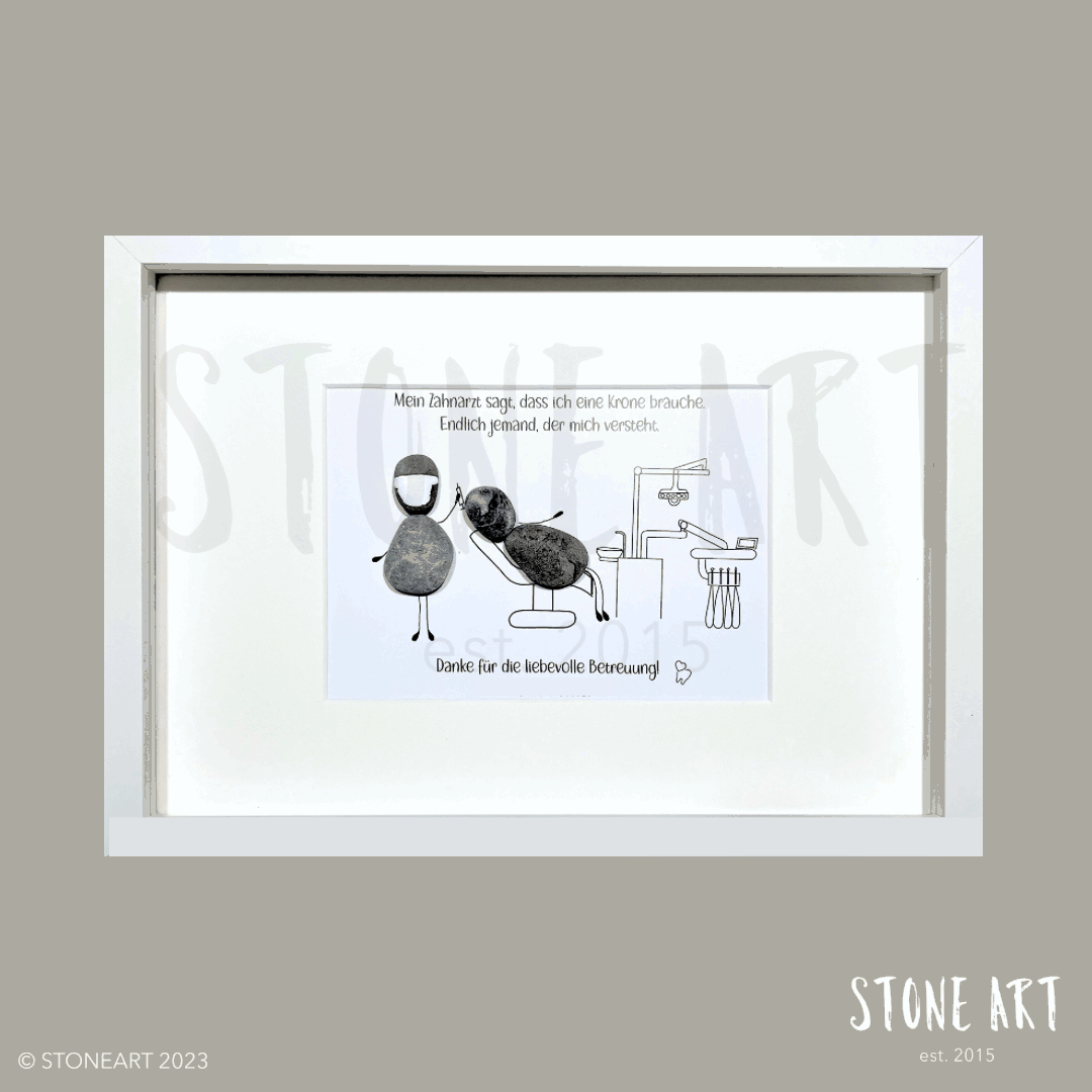 • Steinbild Zahnarzt – mit Humor – handgemacht aus echten Kieselsteinen
