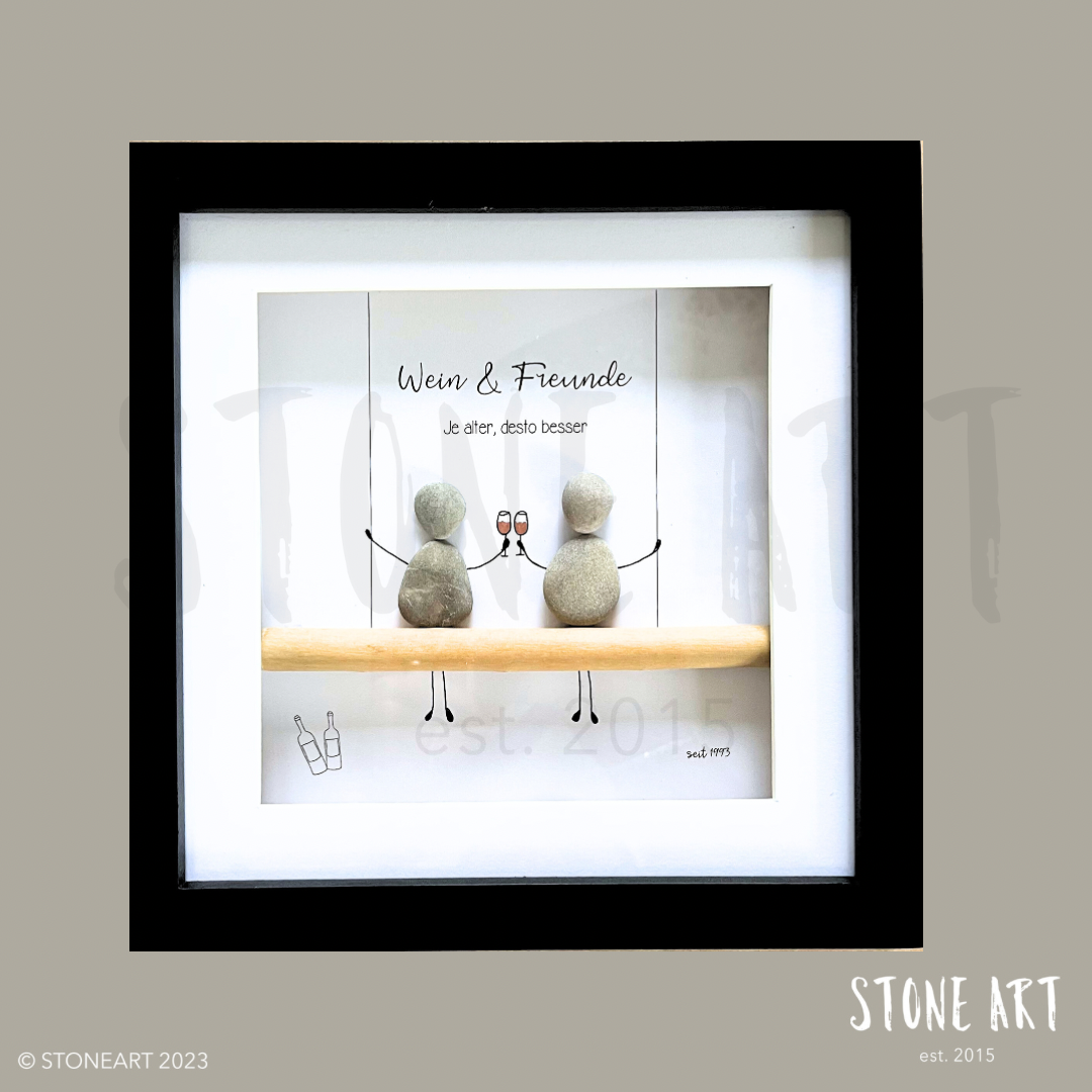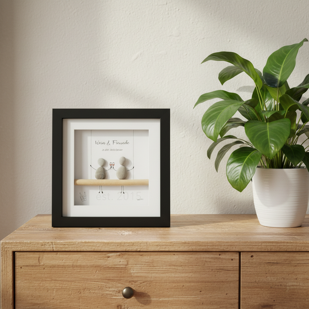 Dieseshandgefertigte Steinbild „Wein & Freunde – je älter, desto besser“ist ein charmanter Blickfang für alle Weinliebhaber und Freund:innen – perfekt alsGeschenk zum Geburtstag, Jahrestag, Einzug oder als humorvolle Dekofür Küche, Wohnzimmer oder Hausbar.