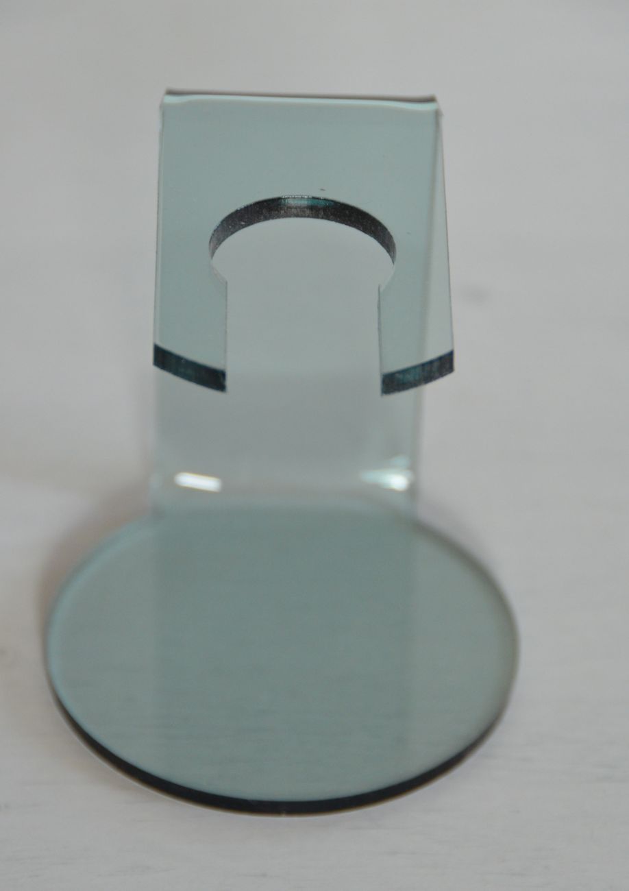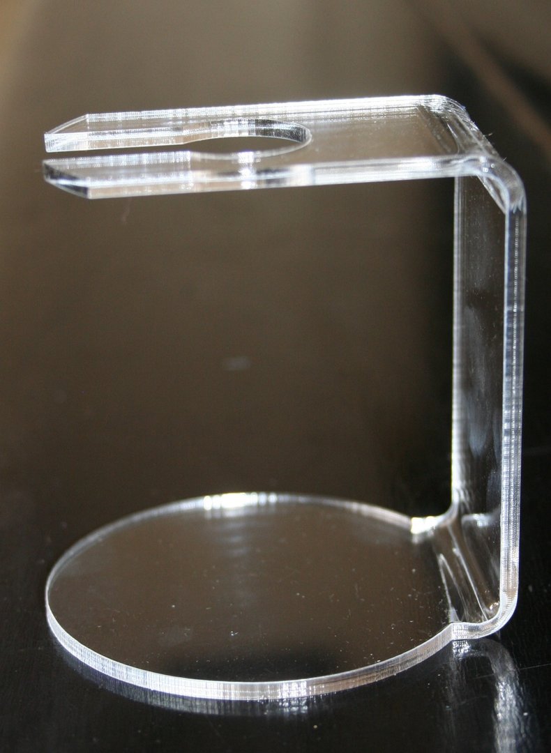 Edler, handgebogener Stempelhalter aus Acrylglas. Ein Schmuckstück für jeden Schreibtisch. Stempelträger ohne Gravur
