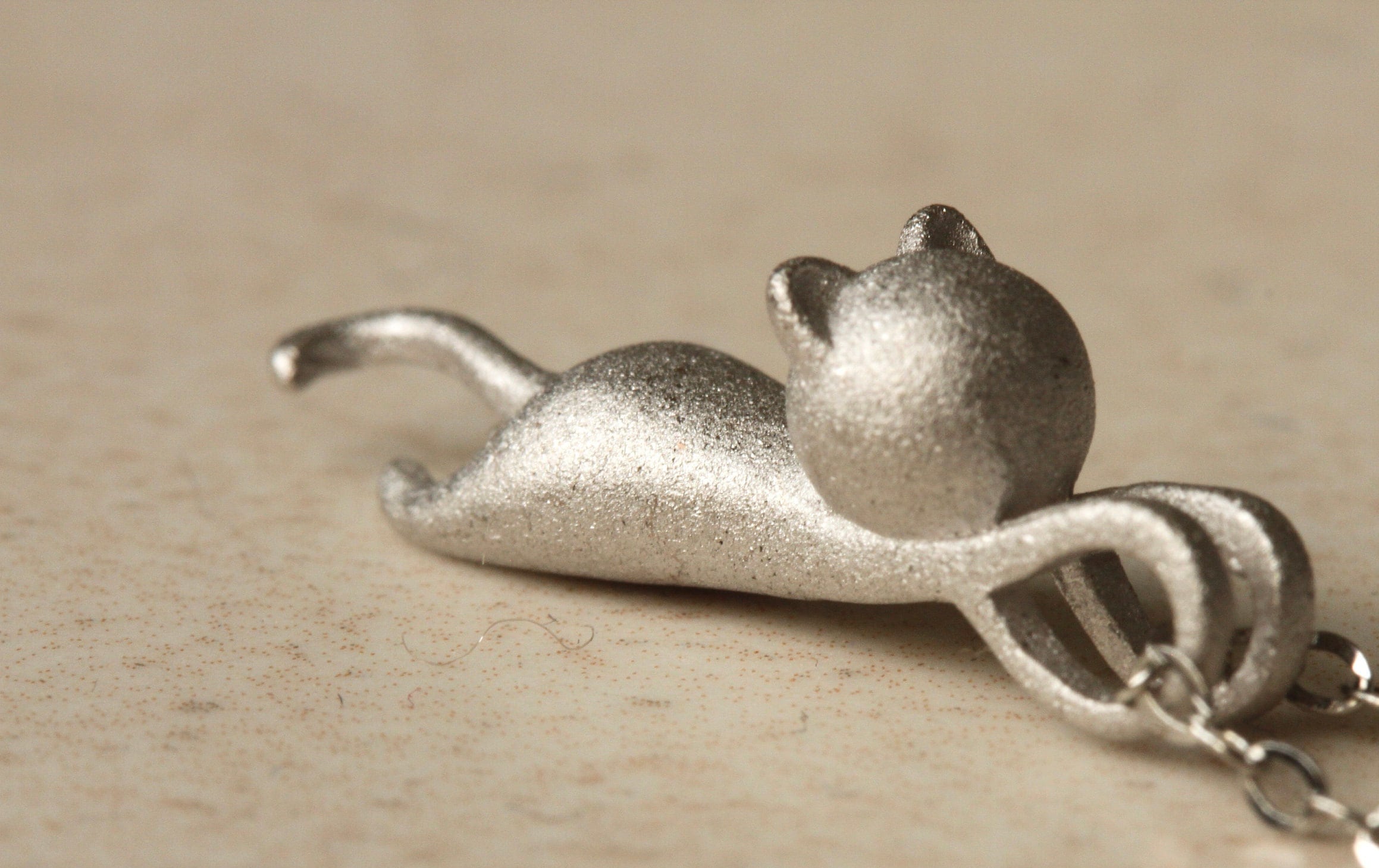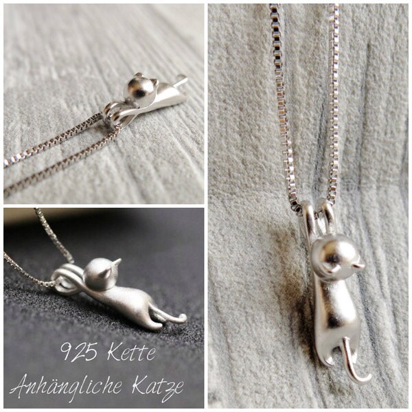 Alternativ mattes Finish der Katze mit glänzender Kette. Beides aus SterlingSilber gearbeitet.