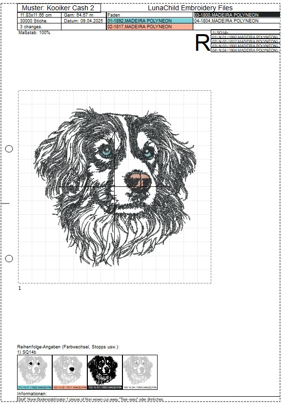 Die Stickdatei Hunderasse Kooiker"Cash" von Lunachild ist ideal für Hundeliebhaber. Mit dieser detaillierten Datei kannst du den süßen Hundauf Kleidung, Taschen und mehr verewigen. Perfekt für kreative Projekte und ein einzigartiges Design!
