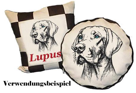 damit sie ein schönes und detailreiches Ergebnis erhalten. Mit einem dickeren Garn und Nadel kann das Ergebnis unscharf und konturlos wirken. Die Datei sollte auf einen festen Stoff sowie ein festes Stickvlies gestickt werden.