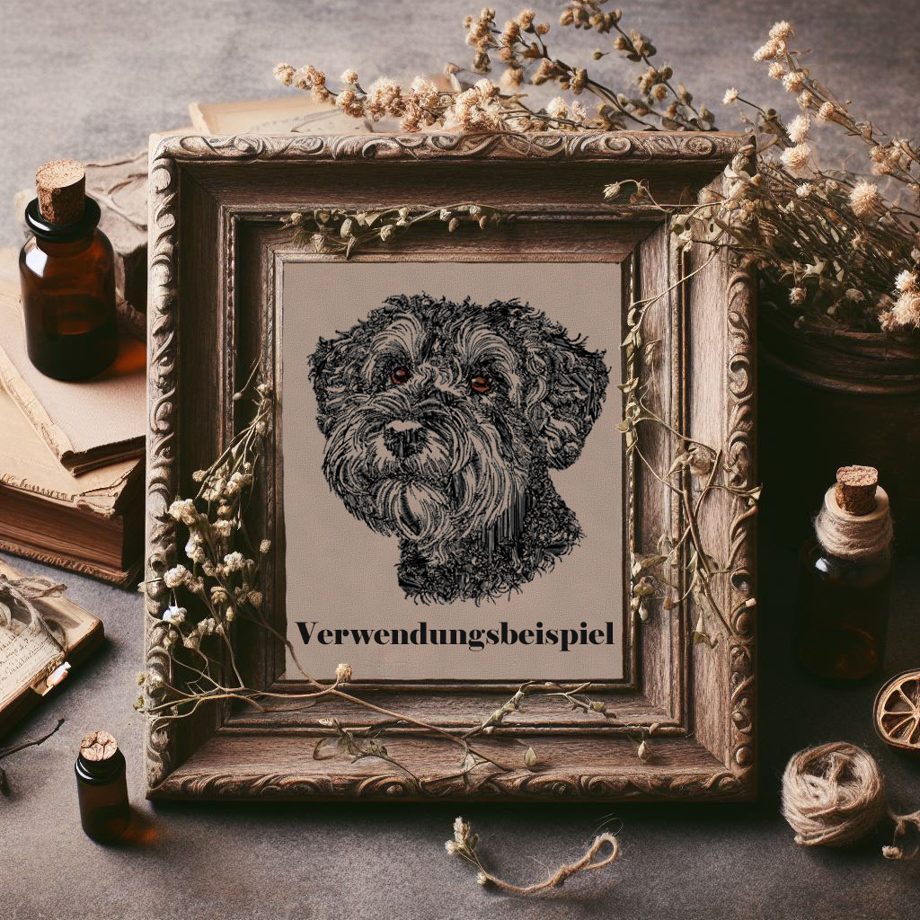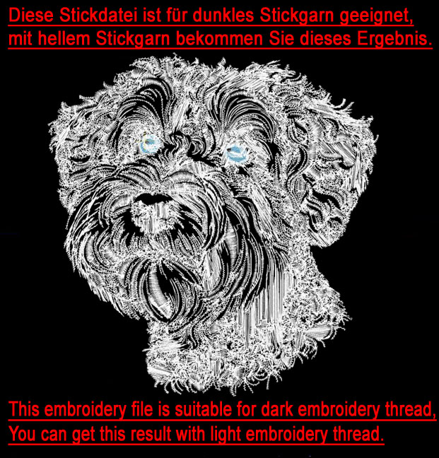 damit sie ein schönes und detailreiches Ergebnis erhalten. Mit einem dickeren Garn und Nadel kann das Ergebnis unscharf und konturlos wirken. Die Datei sollte auf einen festen Stoff sowie ein festes Stickvlies gestickt werden.