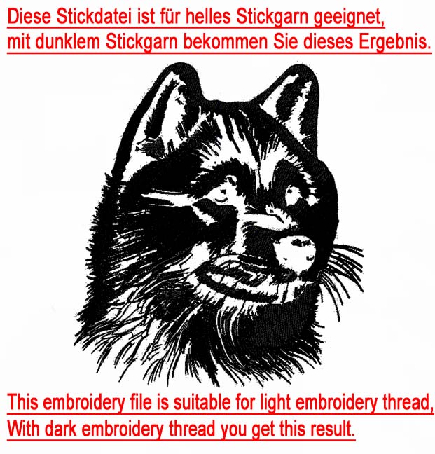 um realistische Stickdateien sind deutlich mehr Stiche als gewöhnlich nötig. Damit sie ein schönes und detailreiches Ergebnis erhalten. Mit einem dickeren Garn und Nadel kann das Ergebnis unscharf und konturlos wirken und der Faden reißen. Die Datei sollte auf einen festen Stoff sowie ein festes Stickvlies gestickt werden.