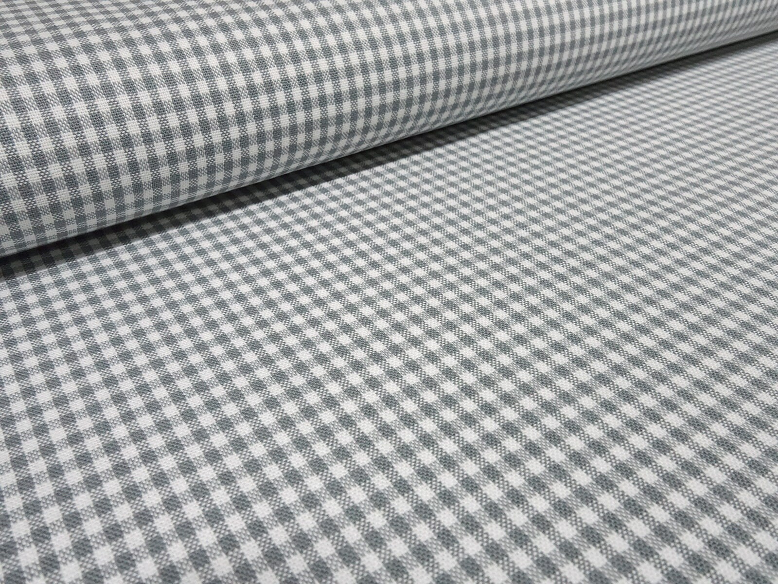 Stoff 100% Baumwolle Karo Zefir 2 mm in hellgrau weiß kariert