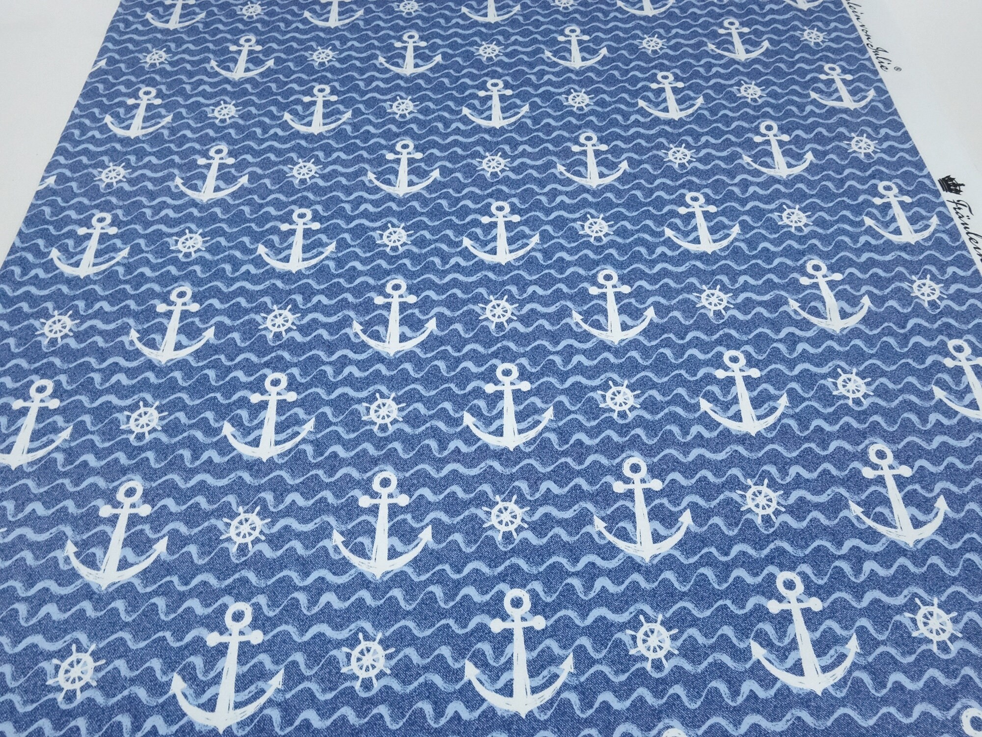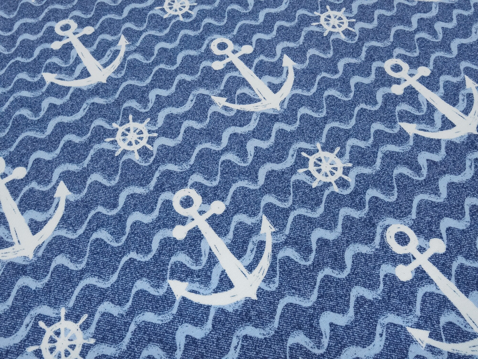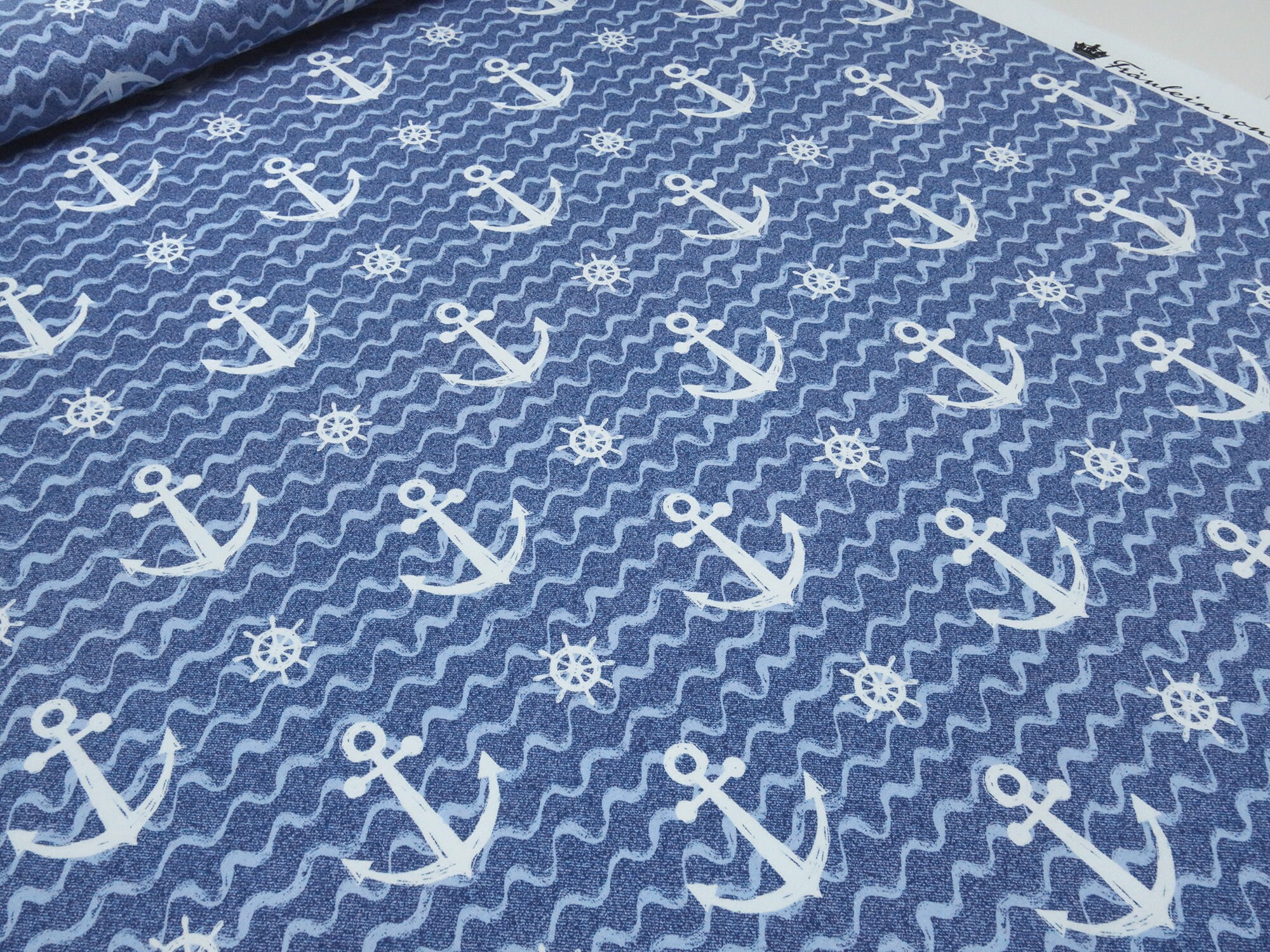 Stoff ist mit einen trendy maritimen Anker Wellen Design bedruckt. Die