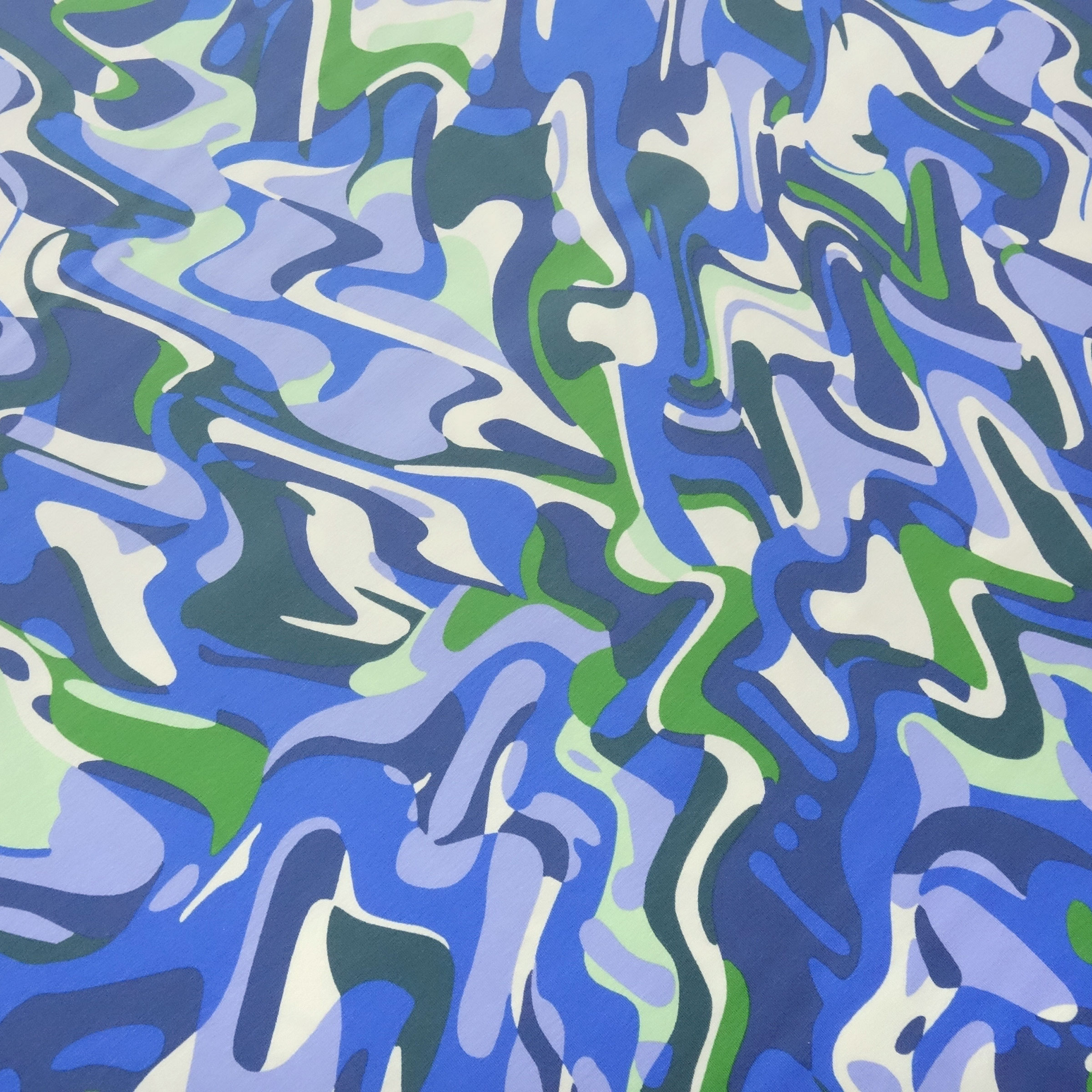 Stoff Baumwolle Jersey mit abstrakten grafischen Design hellblau blau grün cremeweiß Kleiderstoff Kinderstoff
