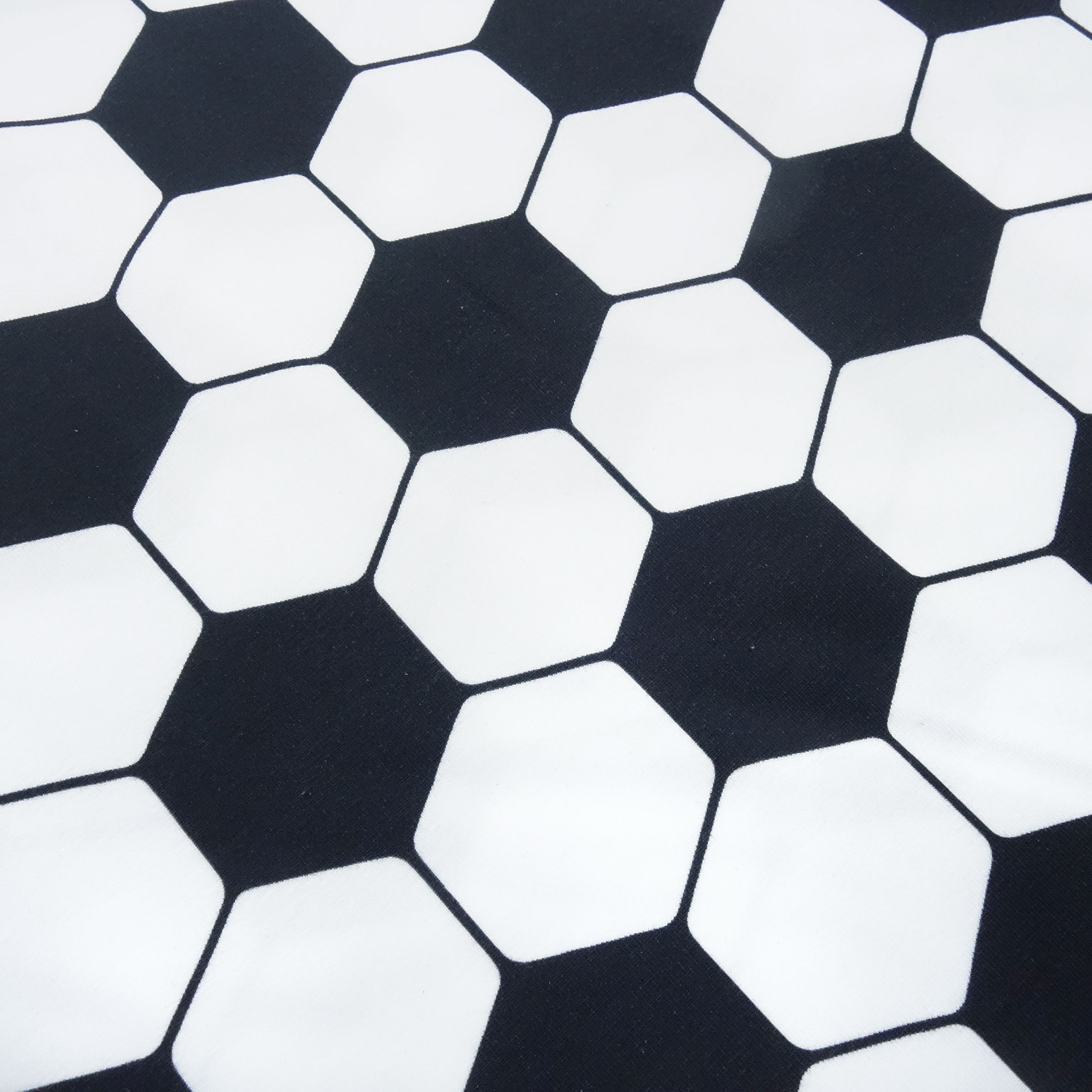 Stoff Baumwolle Jersey Fußball Soccer Design schwarz weiss Kleiderstoff Kinderstoff